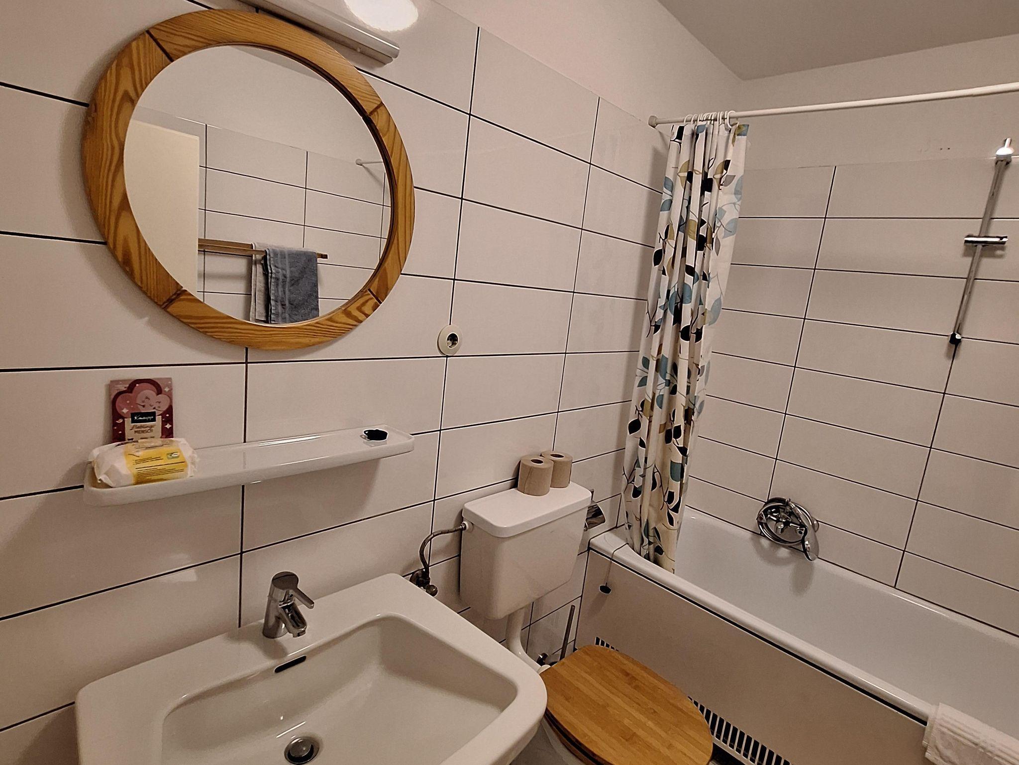 Die Küchenzeile ist vollständig ausgestattet und bietet alles, was Sie für die Zubereitung Ihrer Lieblingsgerichte benötigen. Direkt an den Wohnraum grenzt der offene Schlafbereich mit einem bequemen französischen Bett (1,60 x 2,00 m), das für erholsame Nächte sorgt. Das Badezimmer verfügt über eine Badewanne mit Duschfunktion, WC, Föhn und eine Waschmaschine für längere Aufenthalte. Der gepflegte Garten steht Ihnen zur Mitnutzung offen und bietet zusätzliche Möglichkeiten zum Entspannen im Freien.