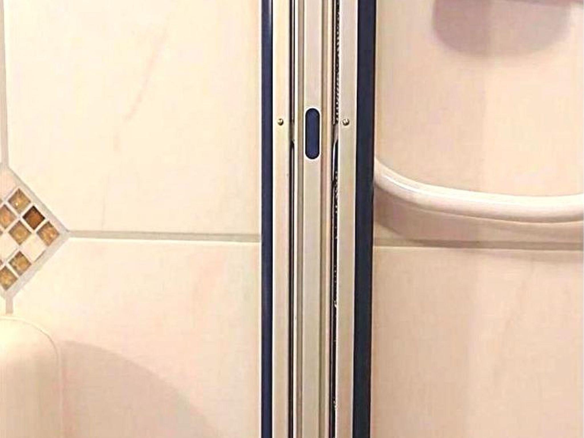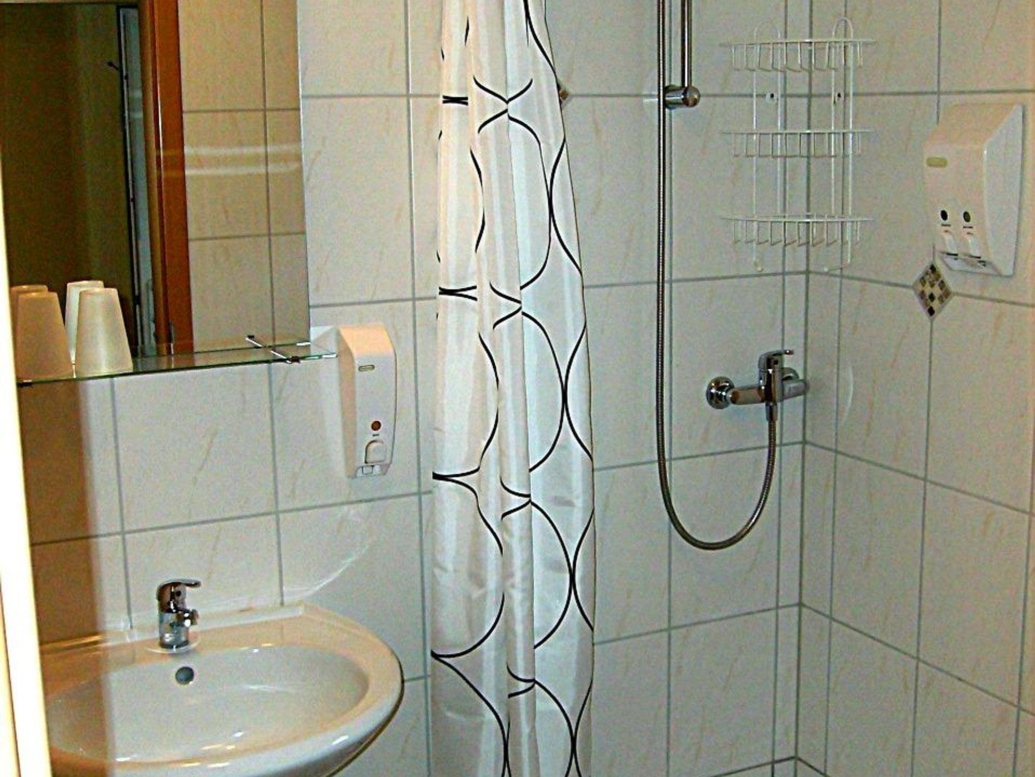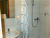 In der unteren Ebene befinden sich Dusche, WC und Waschbecken. Das Bad ist ausgestattet mit Spender für Flüssigseife, Haarwaschmittel und Duschgel, sowie zusätzlich ein Papierhandtuchspender mit weichen Papierhandtüchern.