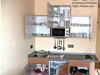 Auf dieser Ebene ist auch die Kochecke mit Spüle (warm/kalt Wasser), Kühlschrank, Mikrowelle und 2 Herdplatten. In den Hängeschränken sind Geschirr, Kaffeemaschine, Toaster, Eierkocher und ein Wasserkocher. Besteck, Pfannen, Töpfe und weitere Kochutensilien sind in den Schränken unter der Spüle verstaut.