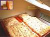 Eine Treppe führt in den oberen Stock, dort stehen die 2 Betten (90x200), die sowohl getrennt stehen können als auch zusammenschiebbar sind. Stumme Diener für die Ablage sind ebenfalls vorhanden.