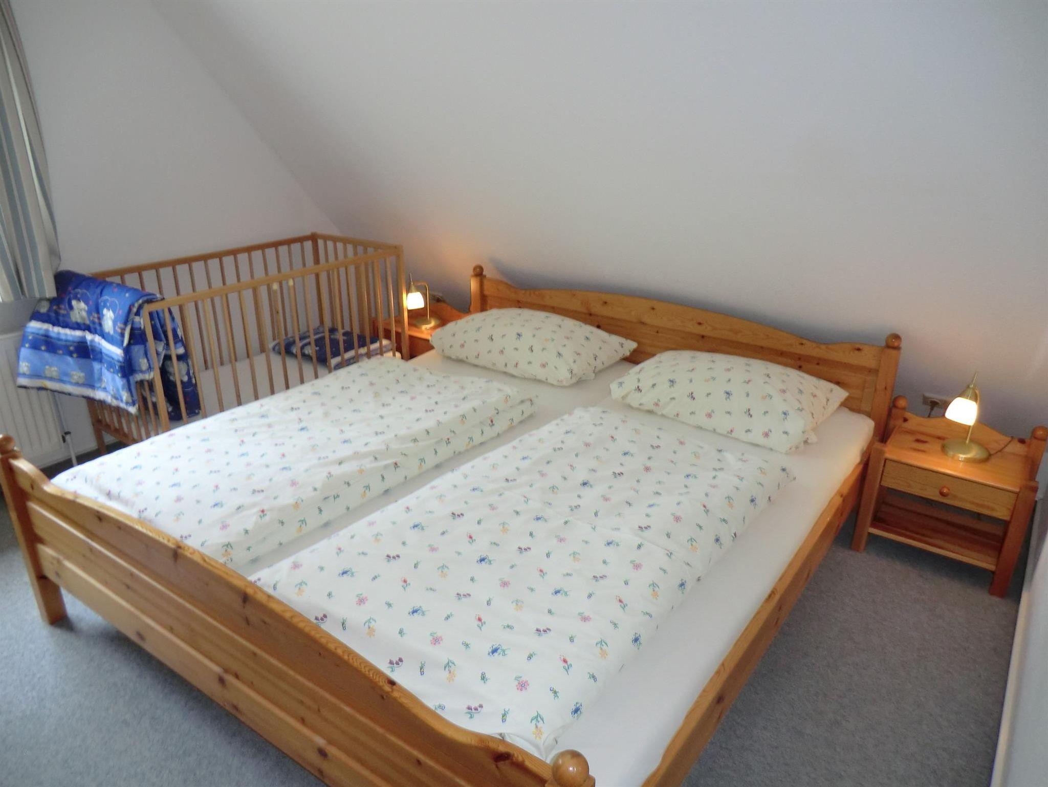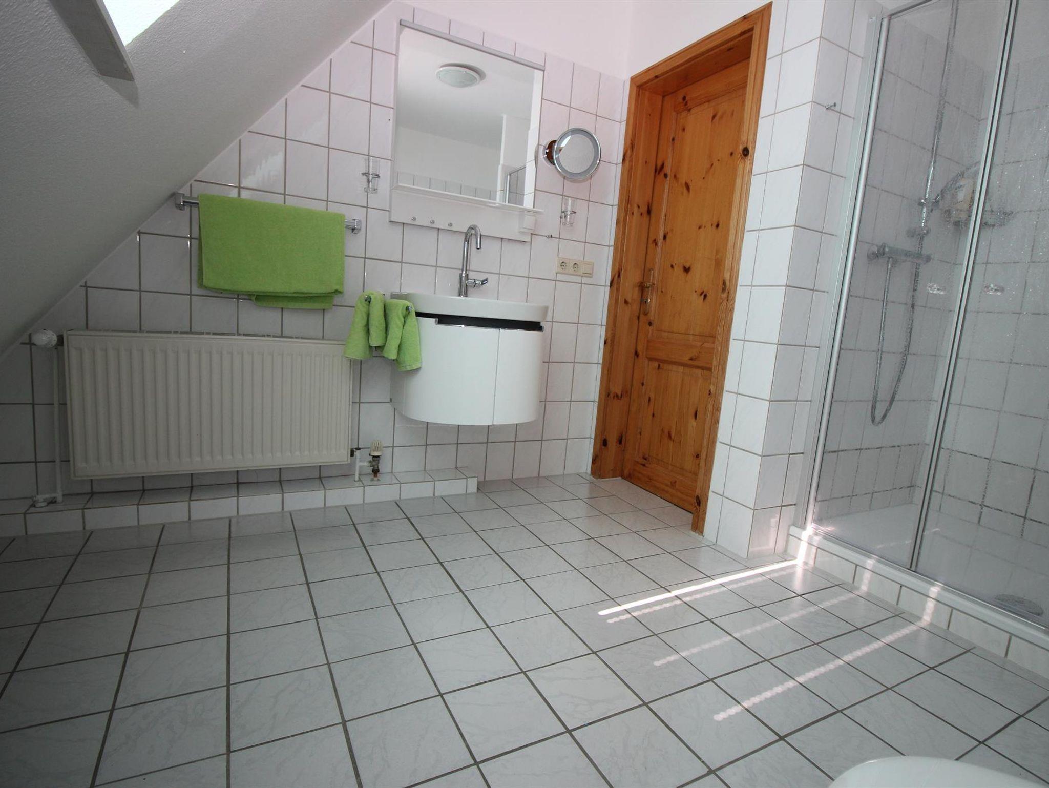 Die Ferienwohnung ist 72 qm groß. Der großzügige Wohn/Essbereich mit Kaminofen ist gemütlich eingerichtet und verfügt über eine Holzbalkendecke. Sie haben aus der Ferienwohnung einen schönen Blick nach Süden und Westen. Die separate Küche mit Geschirrspüler ist komplett ausgestattet. Es befindet sich neben dem Flur ein WC/Waschbecken. Im 1. Stock liegen ein Schlafzimmer mit nebeneinander stehenden Betten und 1 Schlafzimmer mit hintereinander stehenden Betten, jeweils unter einer Dachschräge. Ebenso liegt das Badezimmer mit Dusche/WC und einer Waschmaschine im Obergeschoss.
