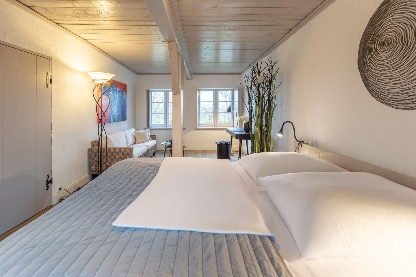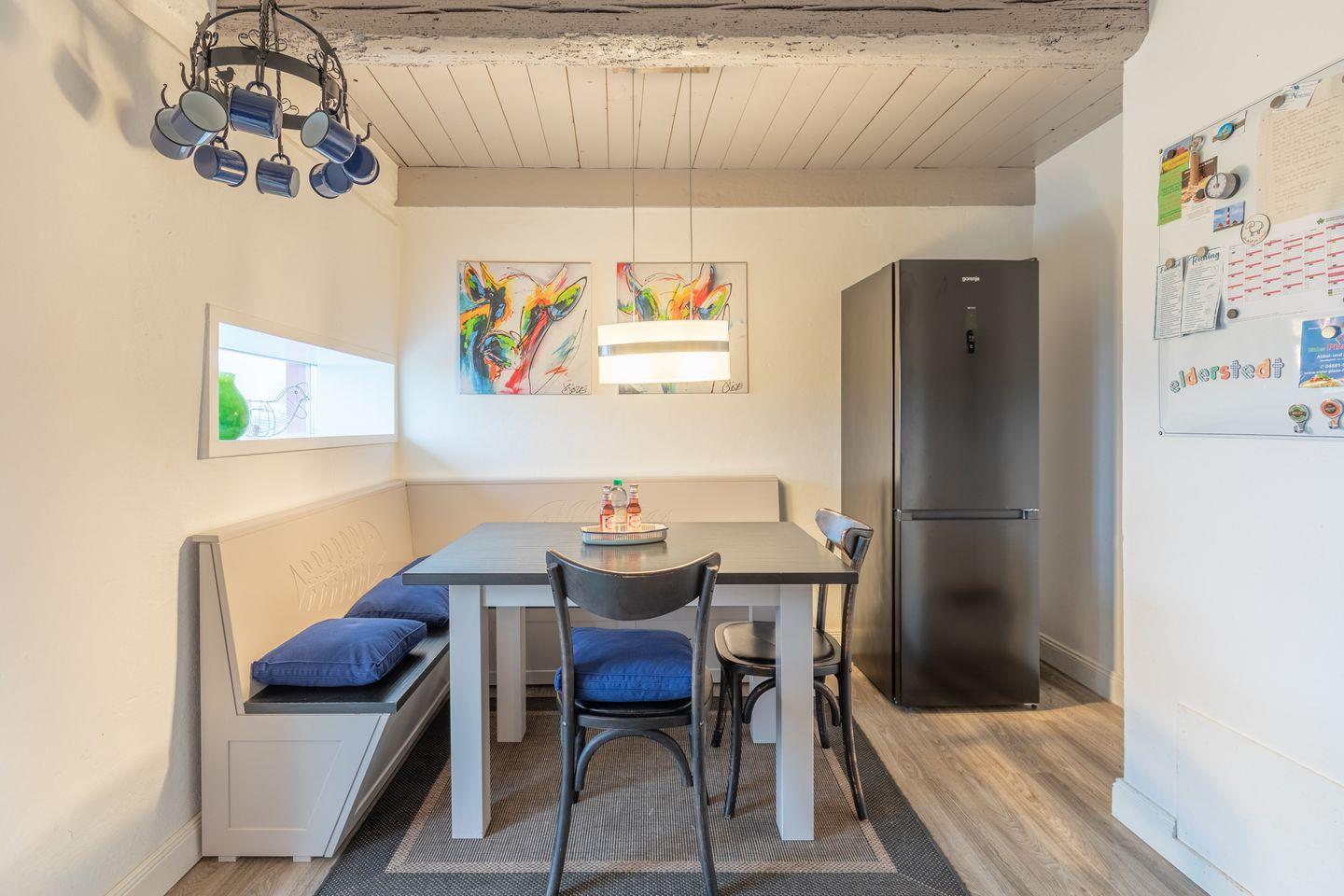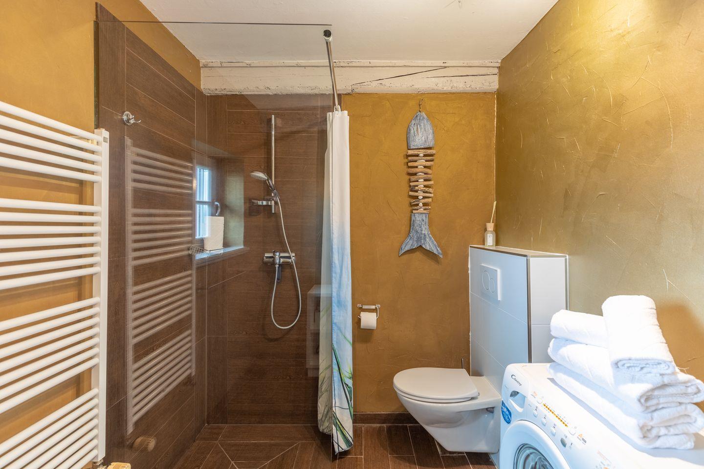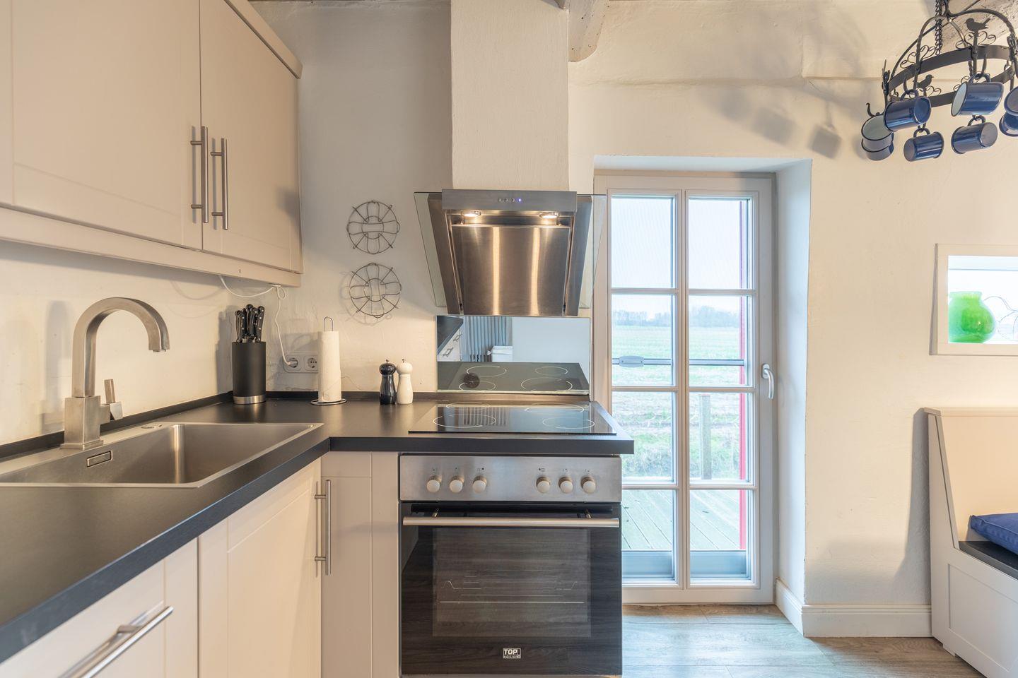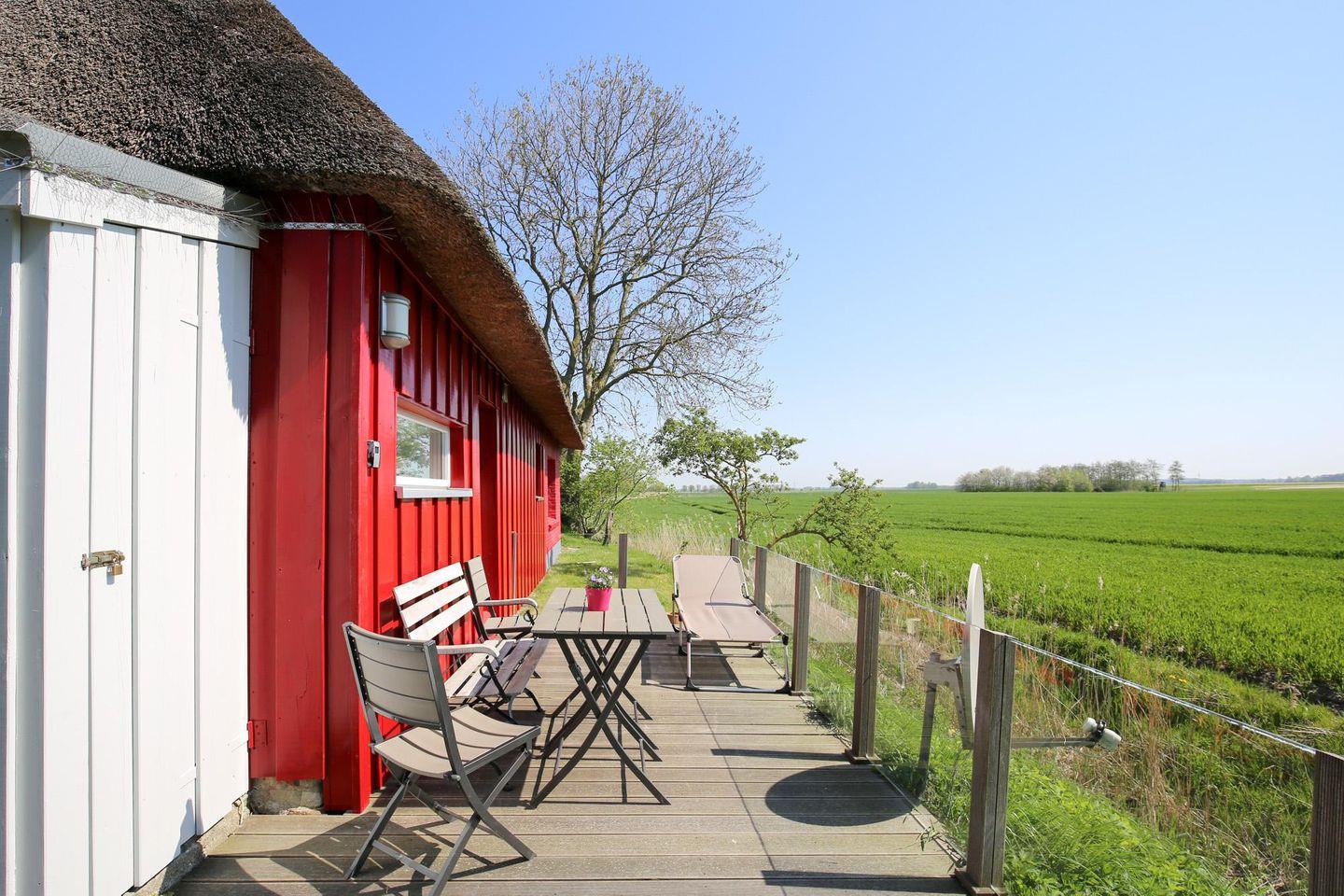 Kleine Details, wie die schön erhaltenen Türen und Fußböden, unterstreichen das Flair der niedlichen und urtümlichen Reetdachkate, die für bis zu vier Personen geeignet ist. Das Ferienhaus verfügt über zwei große Schlafzimmer, ein Wohnzimmer gemütlichem Sofa und SAT-TV, eine sehr gut ausgestattete Küche mit Backofen, Herd, Geschirrspülmaschine, großer Kühlschrank mit Gefrierfächern, Toaster, Wasserkocher, Kaffeemaschine (Filtergröße 4) und einen gemütlichen Essbereich. Im modernen Duschbad steht Ihnen zusätzlich eine Waschmaschine zur Verfügung. Von der Küche aus gelangen Sie zu einer geschützten Terrasse mit Gartenstühlen, von wo aus Sie einen fantastischen Blick über die Felder haben.