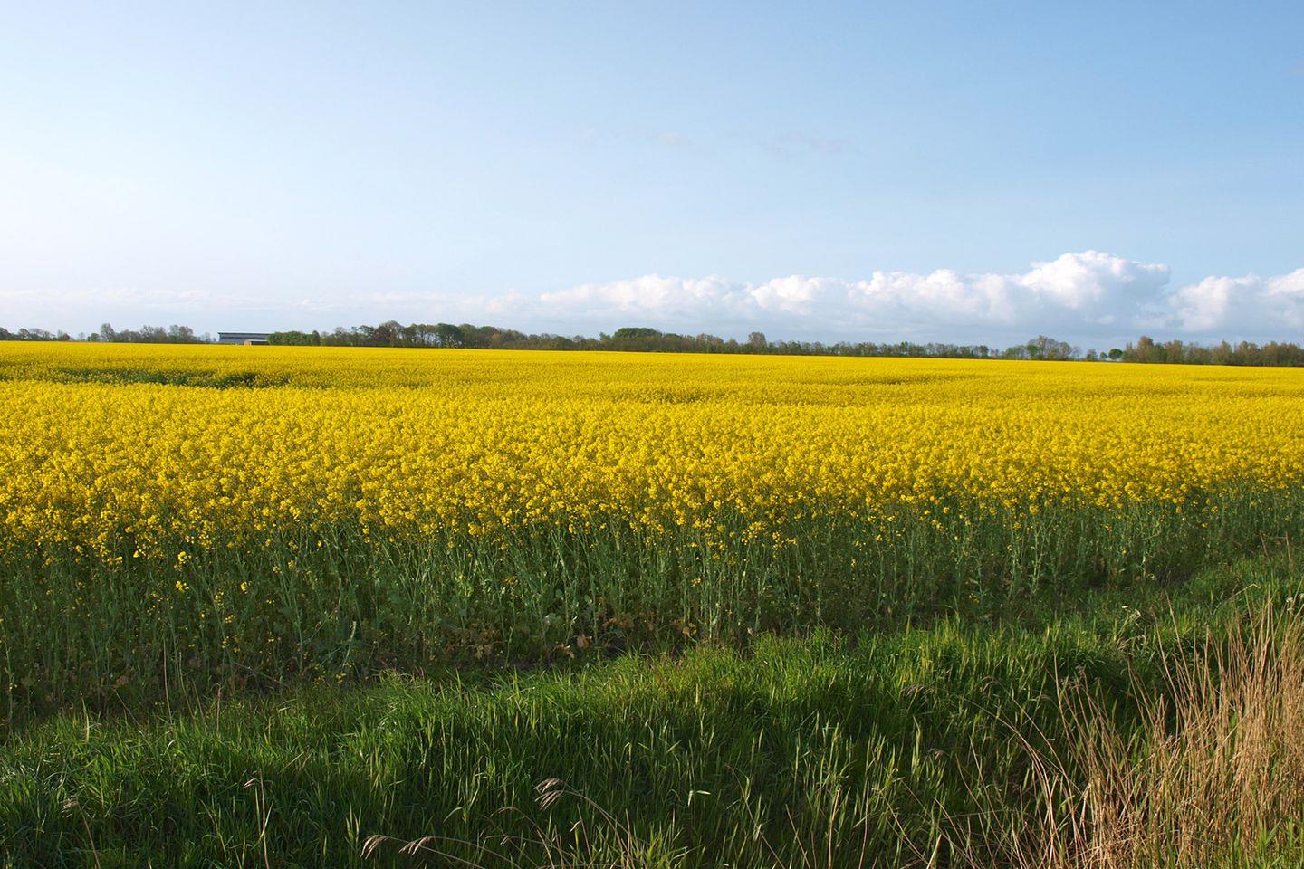 Ringsherum schauen Sie über weite Felder und Wiesen.