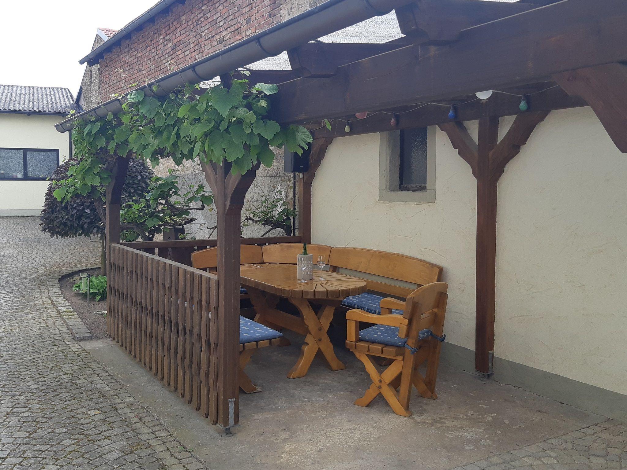 Dusche sowie WC.Im Hof befindet sich eine Pergola mit einer gemütlichen Sitzgruppe.