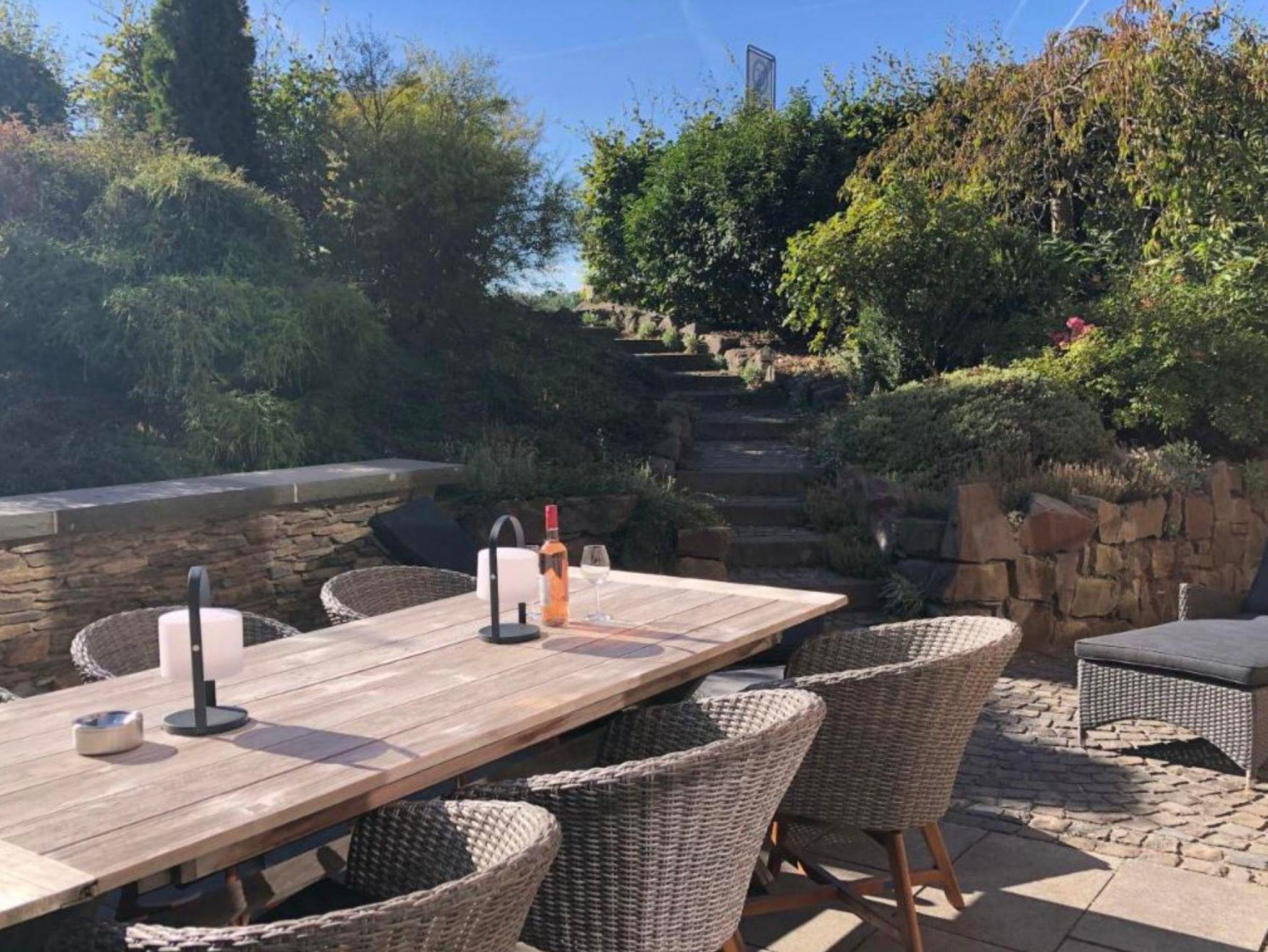 Wir freuen uns sehr euch nach Möglichkeit persönlich in unserer attraktiv, gemütlich und hochwertigen Ferienwohnung “Elztalidyll“ willkommen zu heißen. Die Wohnung befindet sich in sehr ruhiger Ortsrandlage, ca. 200 m vom schönen Wald des Elztal, aber nur ca. 3,5 km von der Autobahn A 48 entfernt. Die wunderschöne Süd- West- Terrasse wurde aufwändig mit einer echten Natur- Bruchsteinmauer eingeramt und lädt mit hochwertiger Rattan/ Holz Möbilierung zum Entspannen ein. Jahreszeitig (eingeschränkt nutzbar) stehen zwei exklusive Rattan Sonnenliegen und ein großer Sonnenschirm bereit.