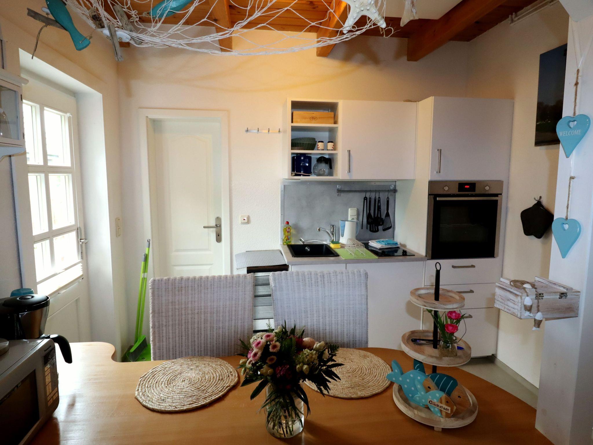 Die ca. 30 m² große Ferienwohnung hat einen separaten Eingang, ein Wohnzimmer, ein Schlafzimmer, eine Küchenzeile und ein Duschbad.