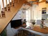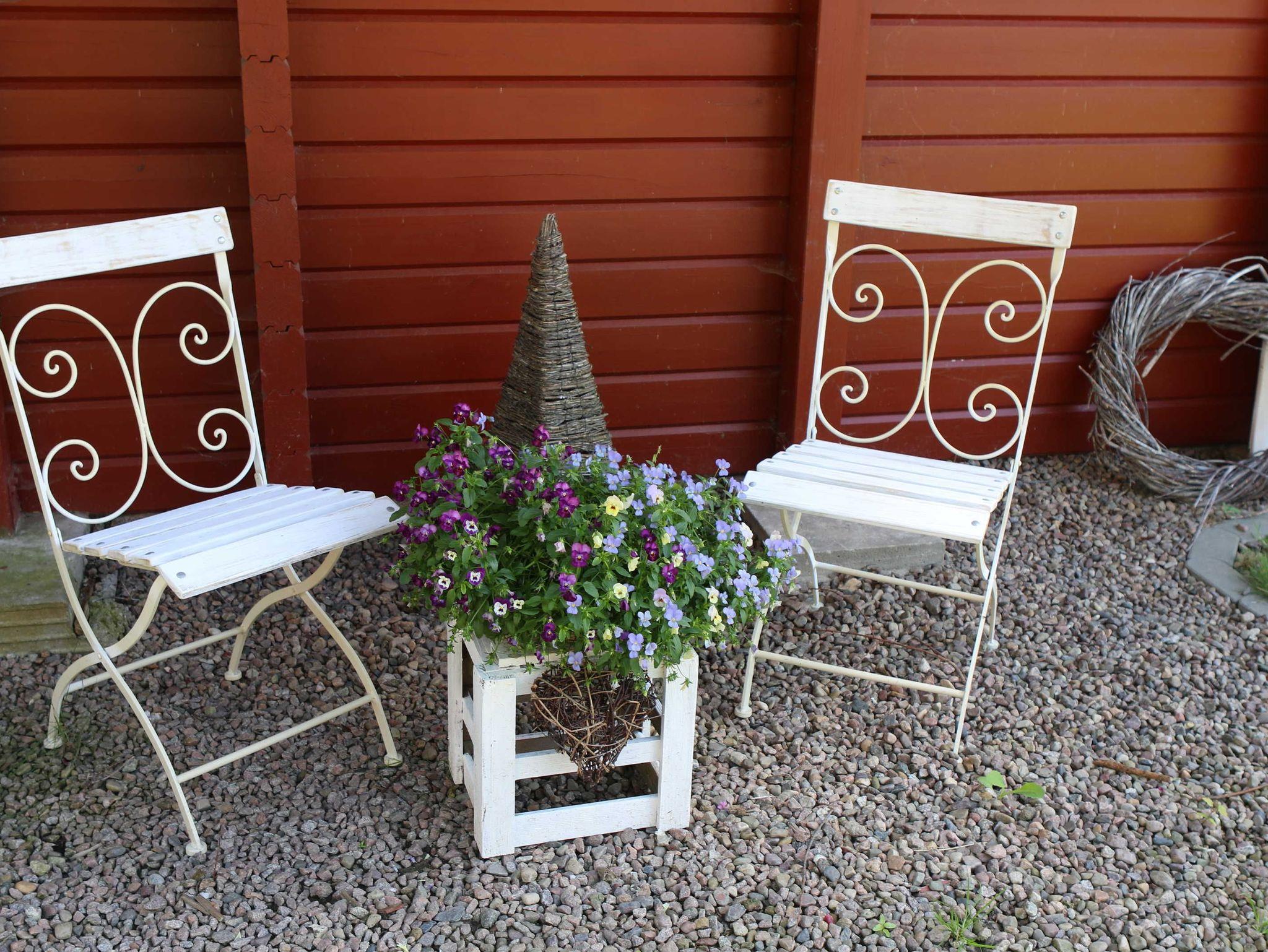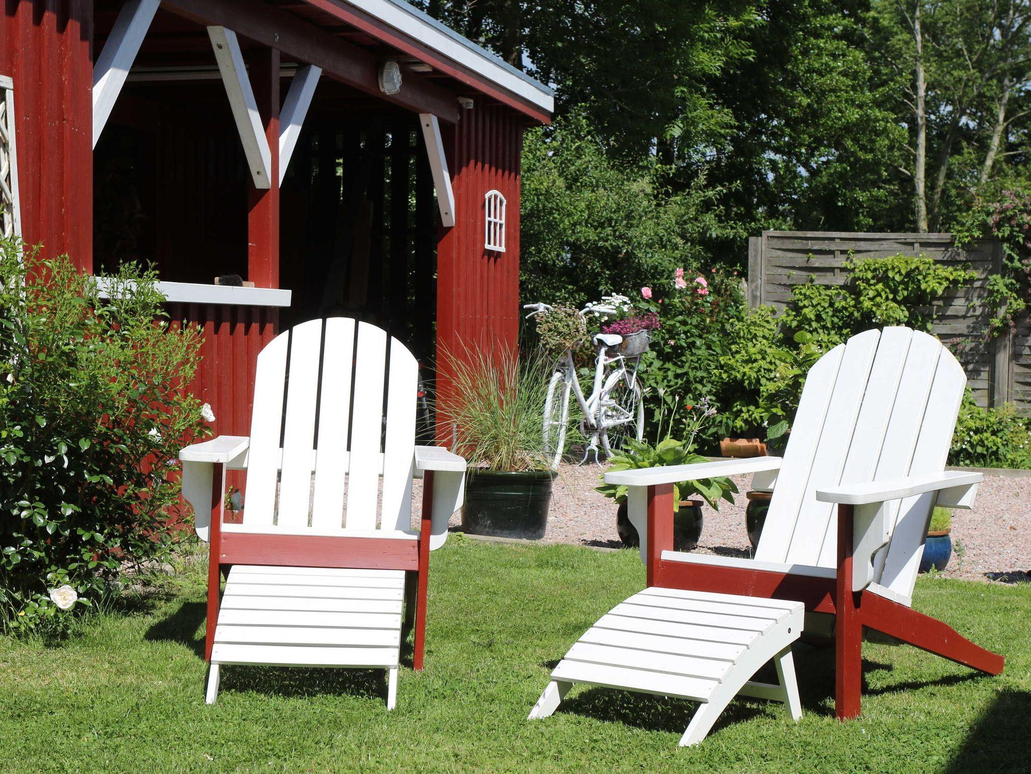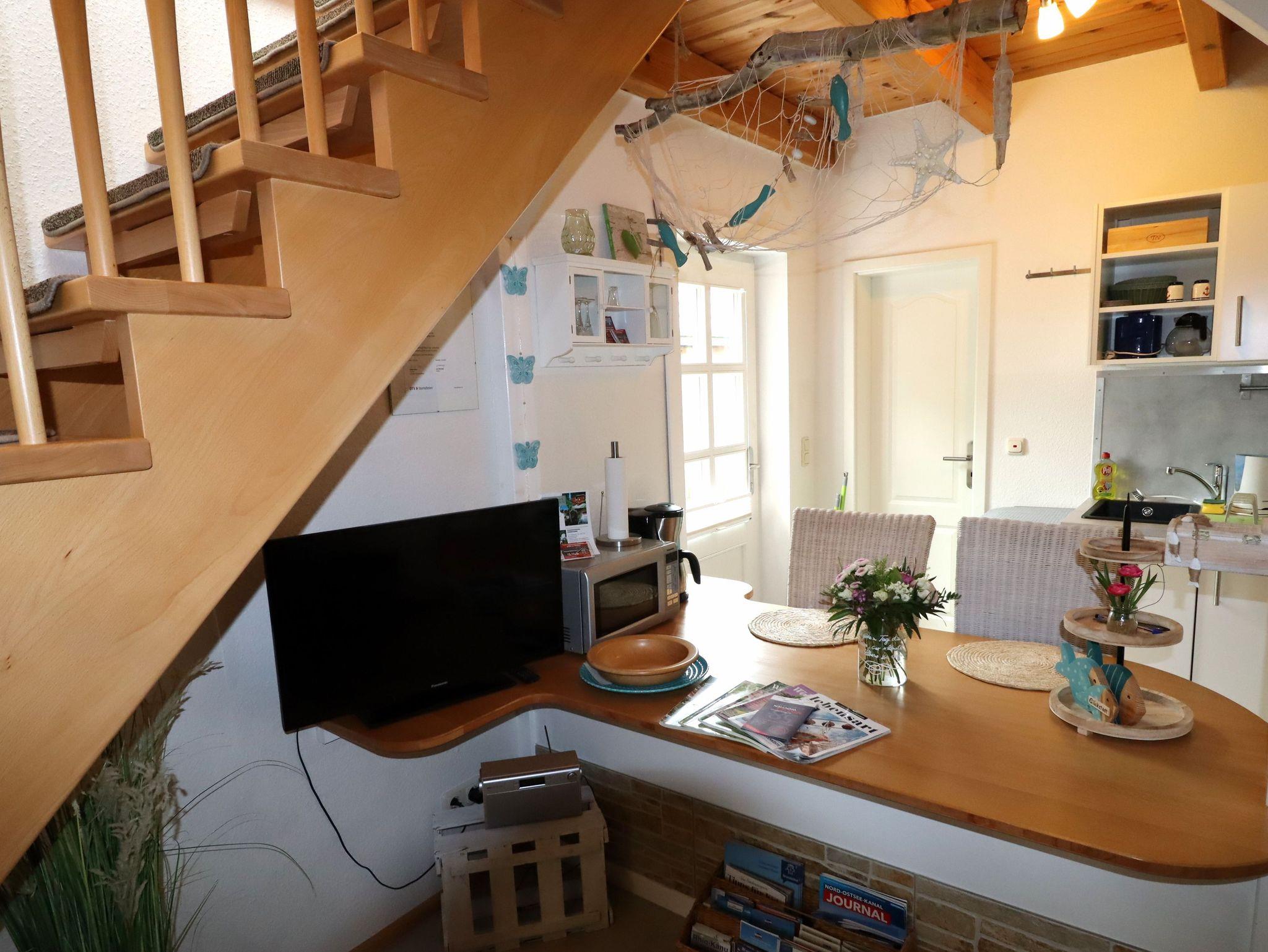 Mikrowelle, Backofen, TV, Stereoanlage, Waschmaschine gegen Gebühr, WLAN-Glasfaser-Internetanschluss und eine Sitzecke im Freien mit Gartenmöbeln und Grill . Das Erd-und Obergeschoss sind mit einer Holztreppe verbunden