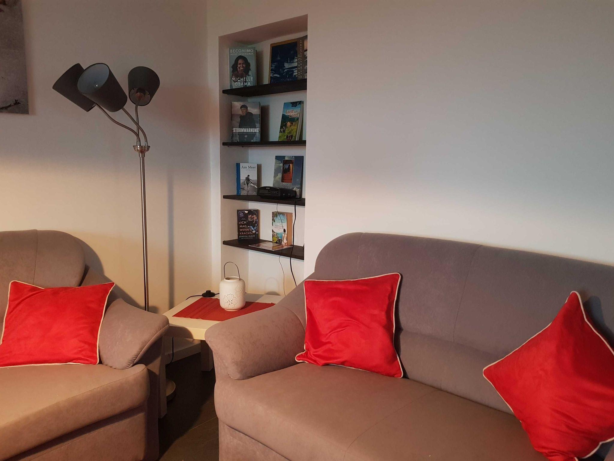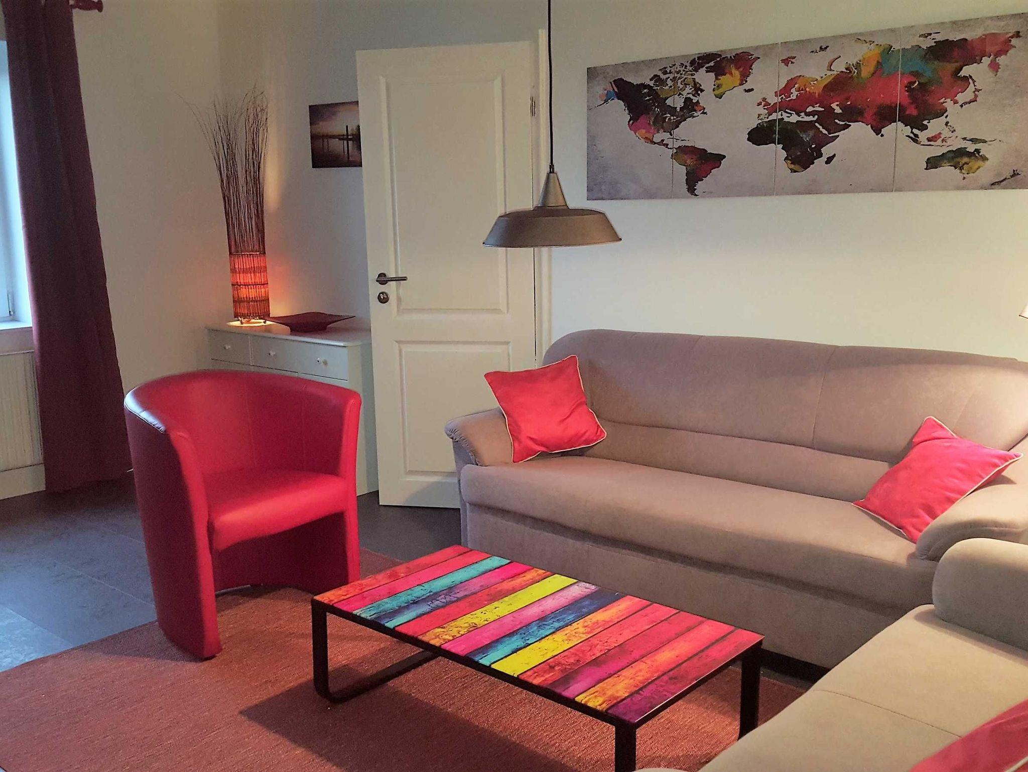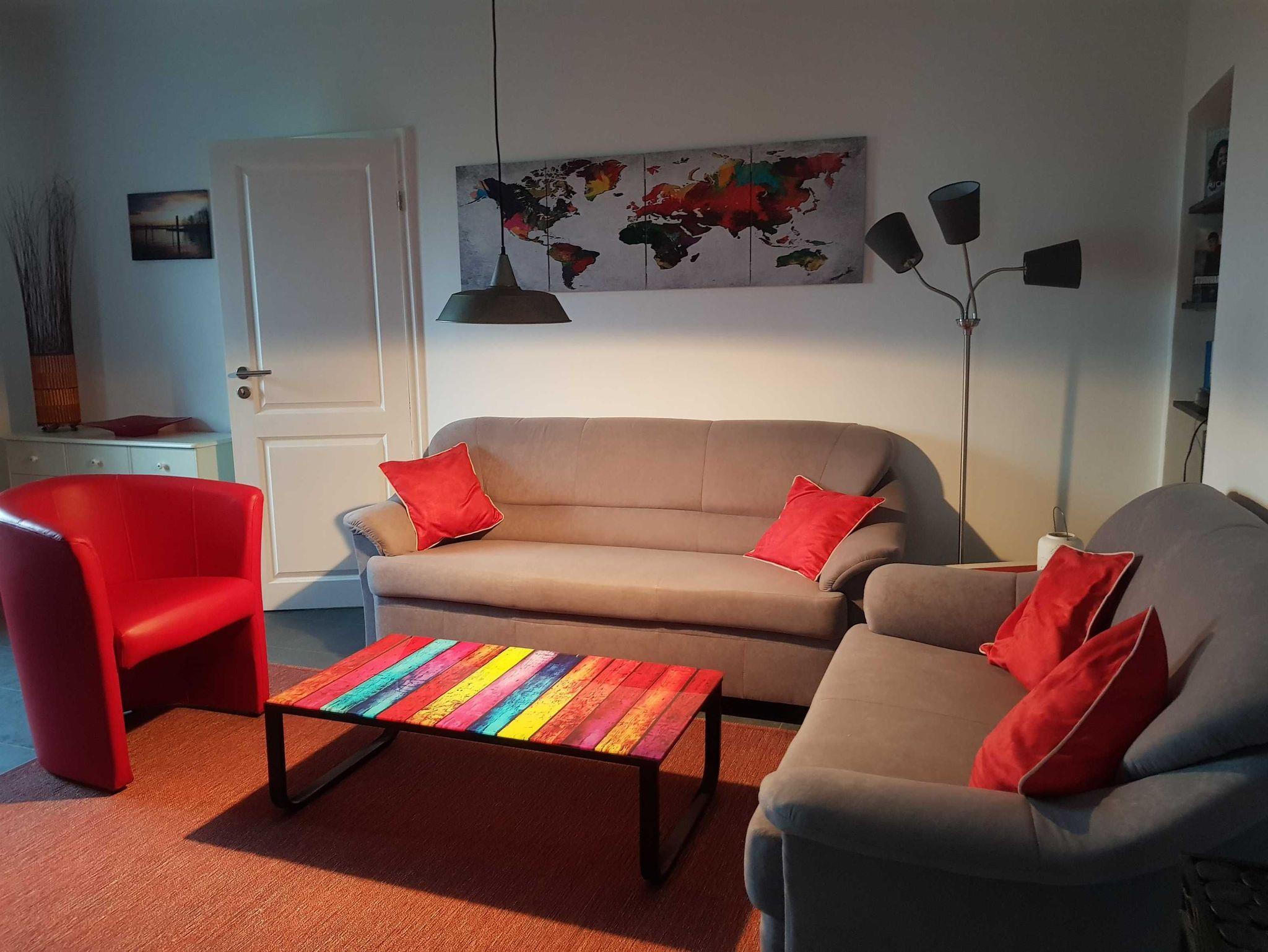 Die Fewo liegt im Erdgeschoss unseres Haus mit separatem Eingang (2 Stufen), kleinem Garten und Terrasse.