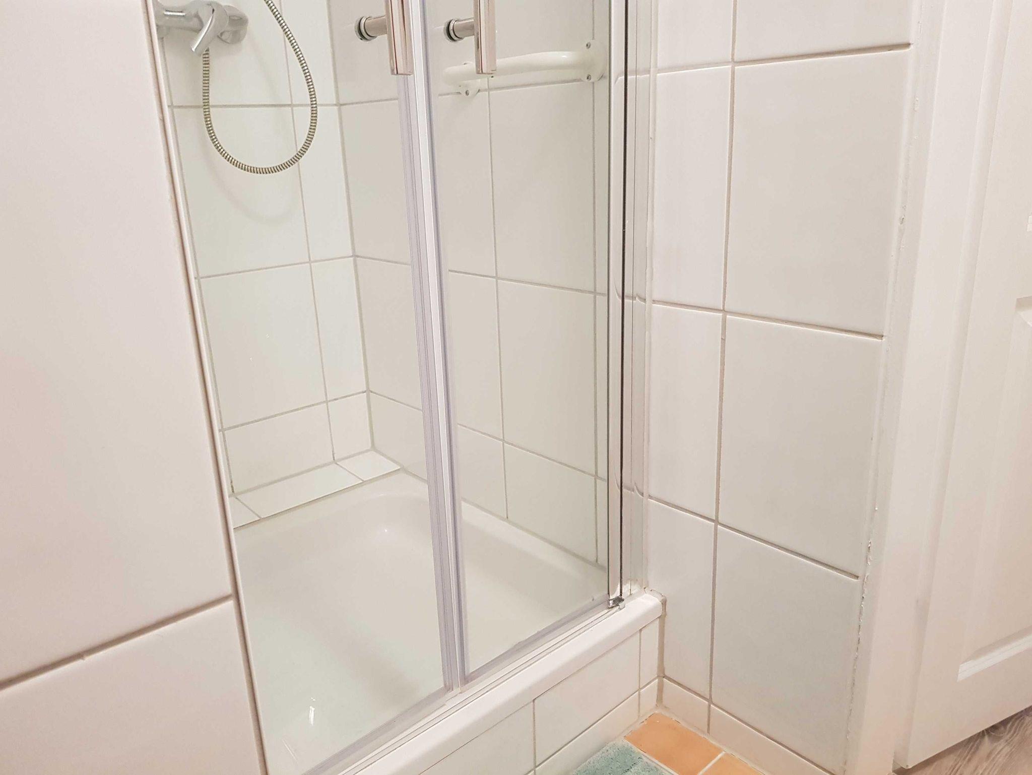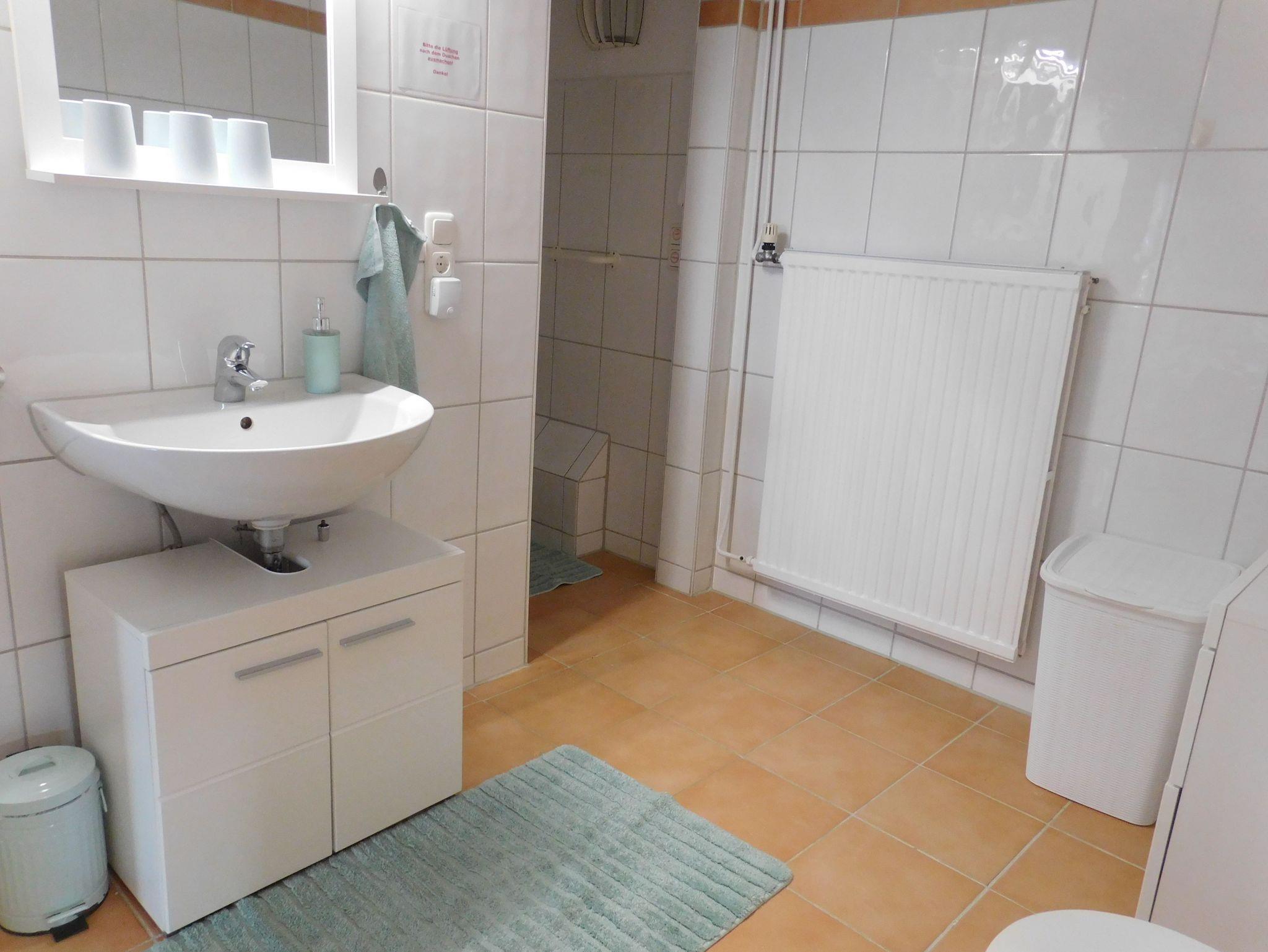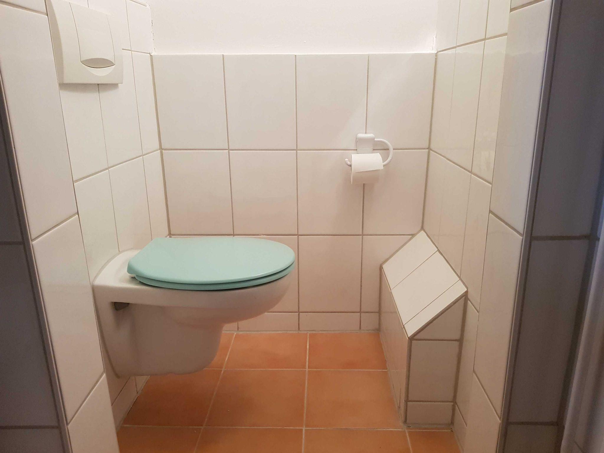 Im Badezimmer ist eine Dusche vorhanden. Das WC im Badezimmer ist wie auch die Dusche durch Nischen abgetrennt.
