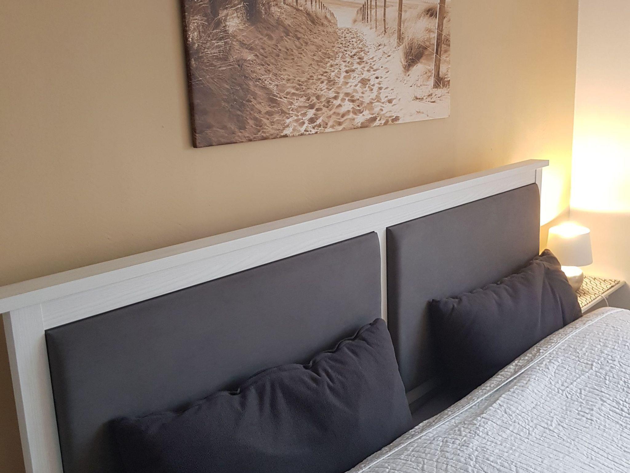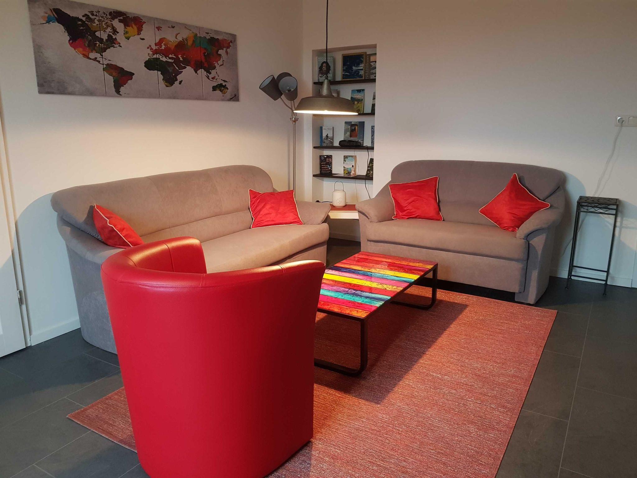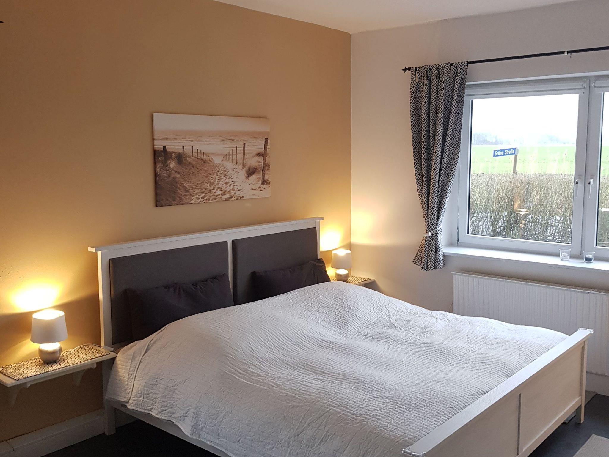Die beiden Schlafzimmer sind mit Doppelbett (1,80 m breit) bzw. Einzelbett (1,20 m breit) ausgestattet. Der Wohnraum hat eine gemütliche Sitzecke mit TV und Kamin.