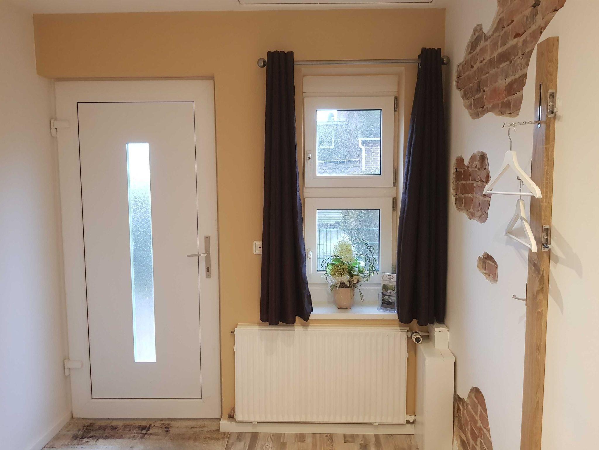 Die FeWo liegt in unserem 100 Jahre alten Einfamilienhaus und hat einen eigenen Eingang (2 Stufen) und einen Garten mit Terrasse.