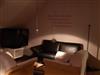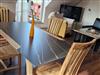 Ledercouch, neuer Esstisch mit Holzstühlen, Couchtisch (Einzelanfertigung), großer Fernseher, etc.