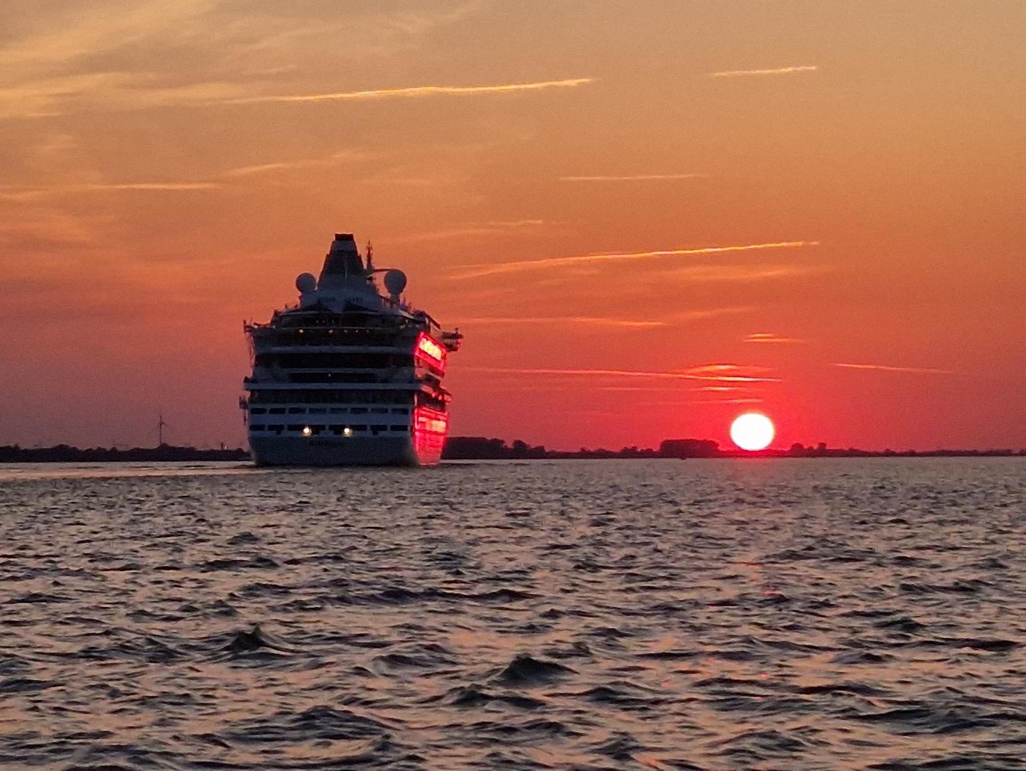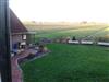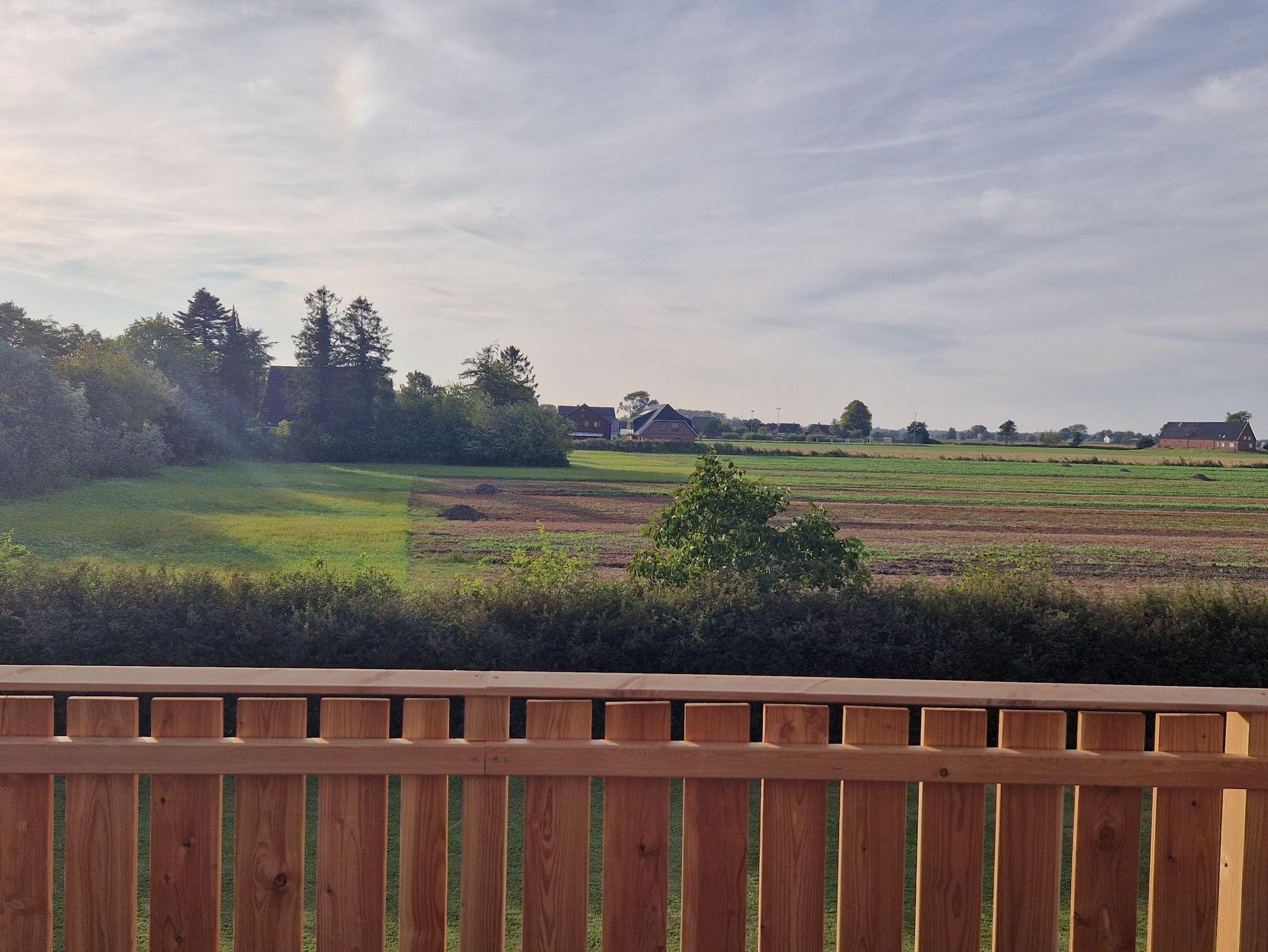 Balkon mit Aussicht über Deich und Felder. Hier könnt ihr die tolles Sonnenuntergänge geniessen.