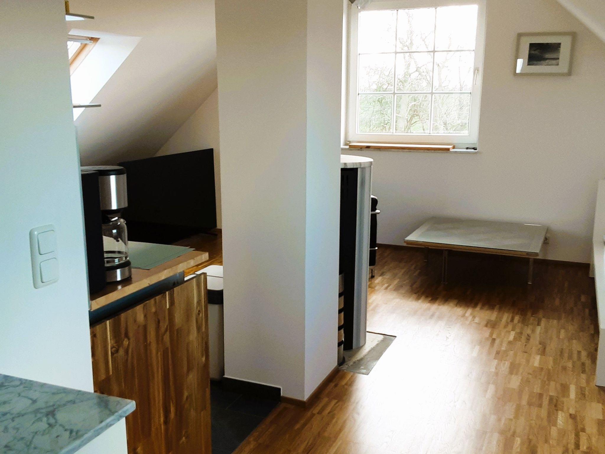 Lichtdurchflutete Dachgeschoßwohnung für 2 Personen mit Traumblick über die Elbe und Felder.