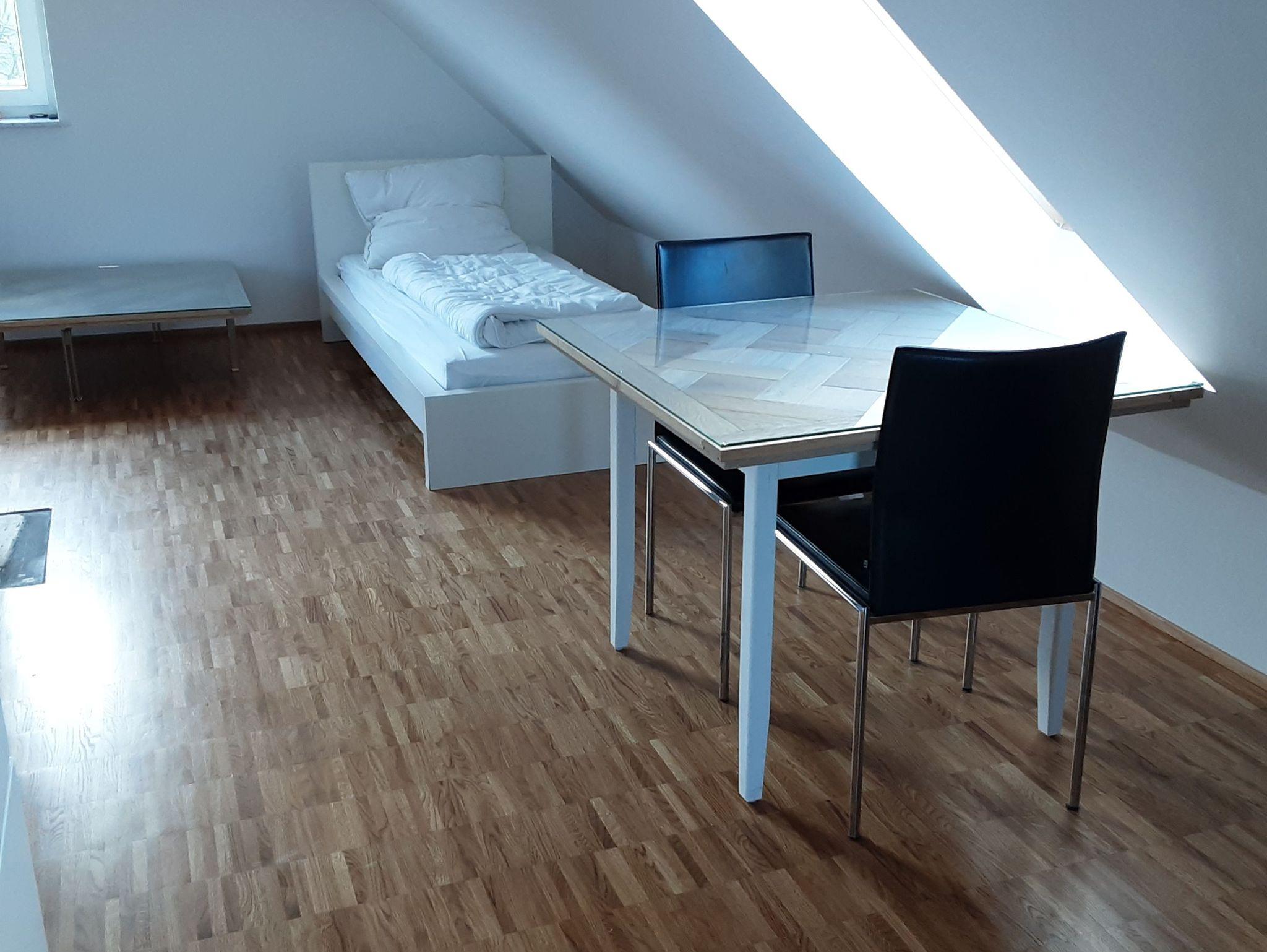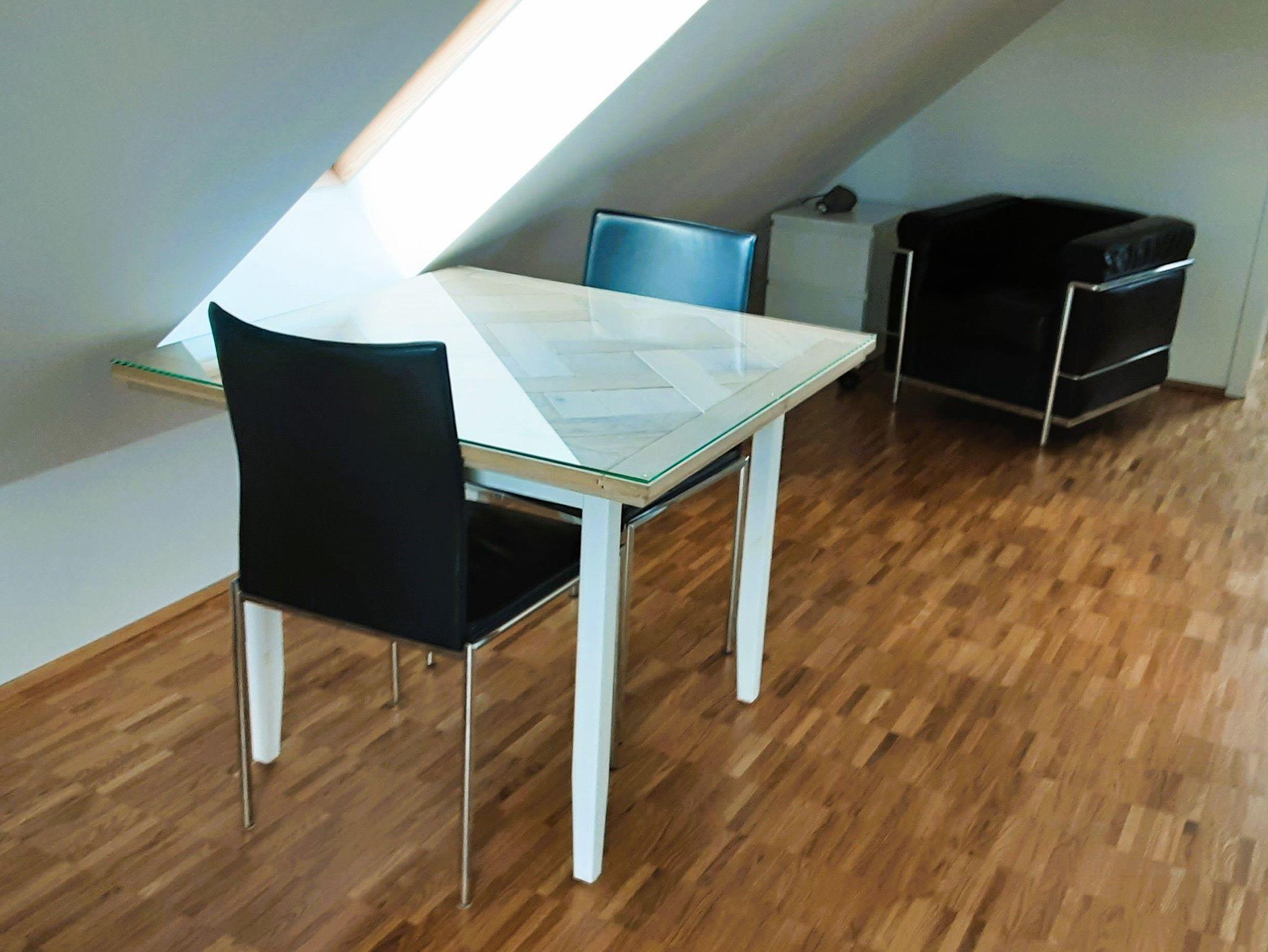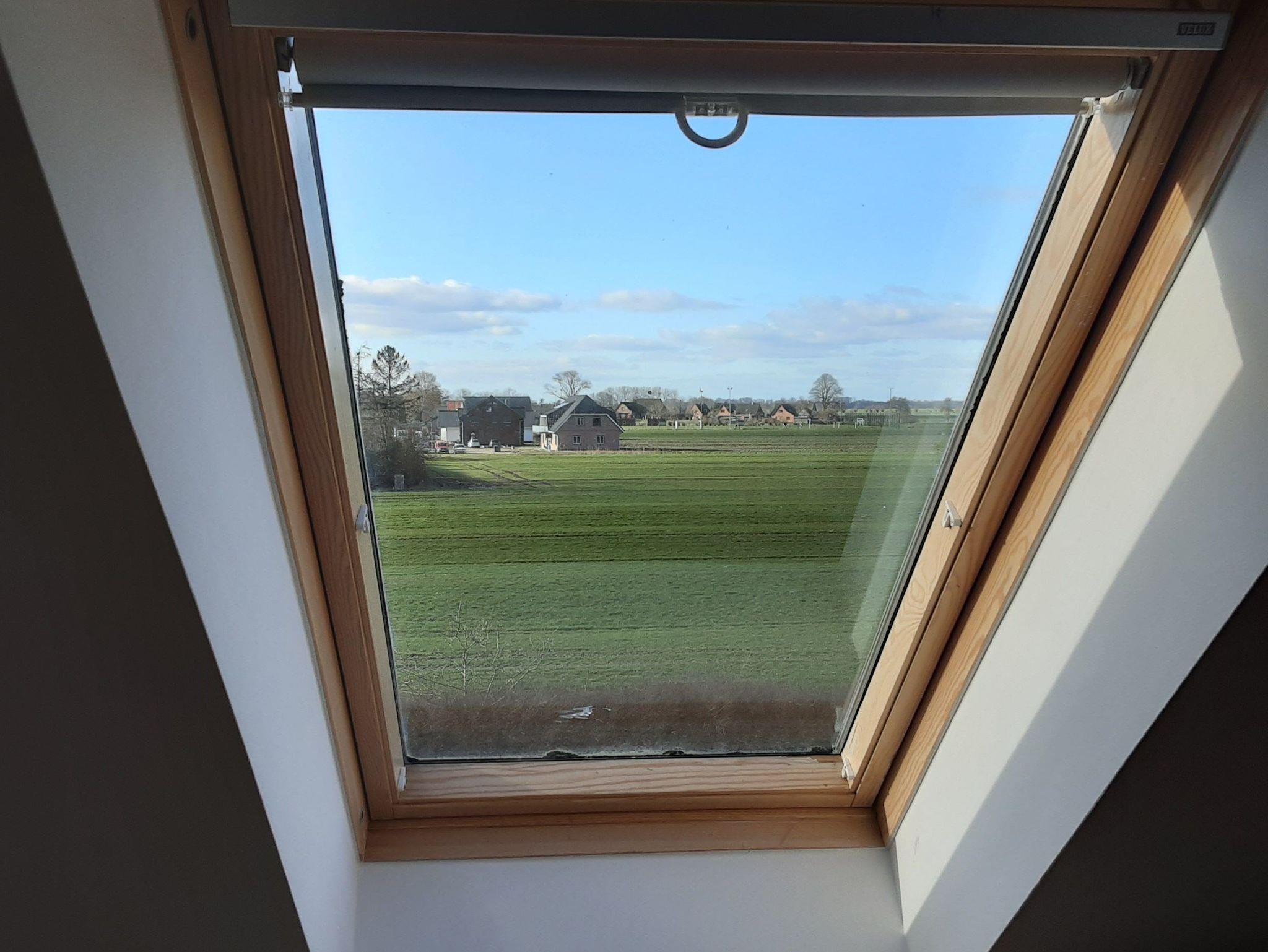 Parkettboden, große Dachfenster zu jeder Seite.