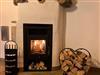 Im Wohnzimmer sorgt ein gemauerter Kaminofen mit Sichtfeuer für eine gemütliche Atmosphäre und lädt zum Verweilen ein.
