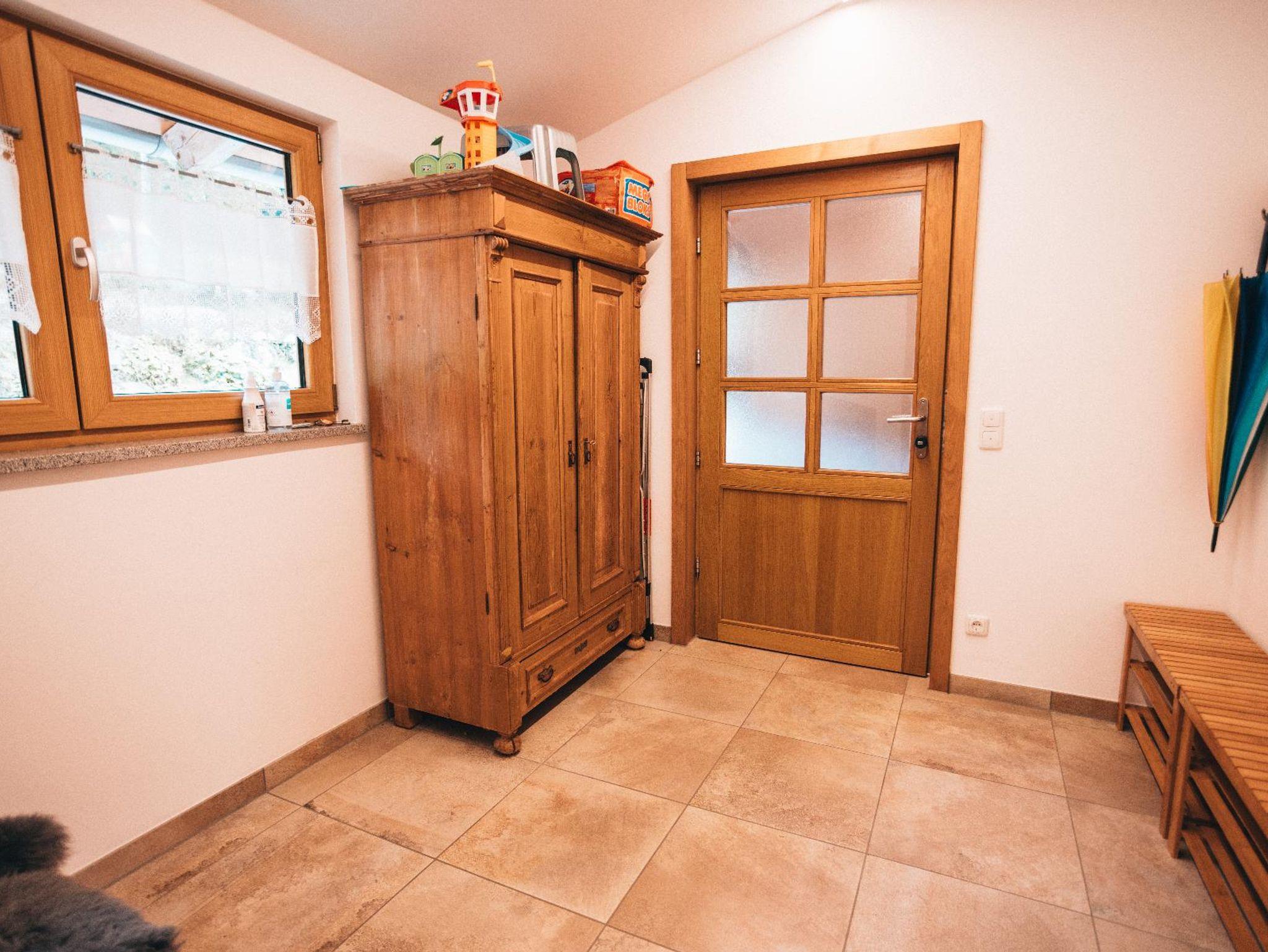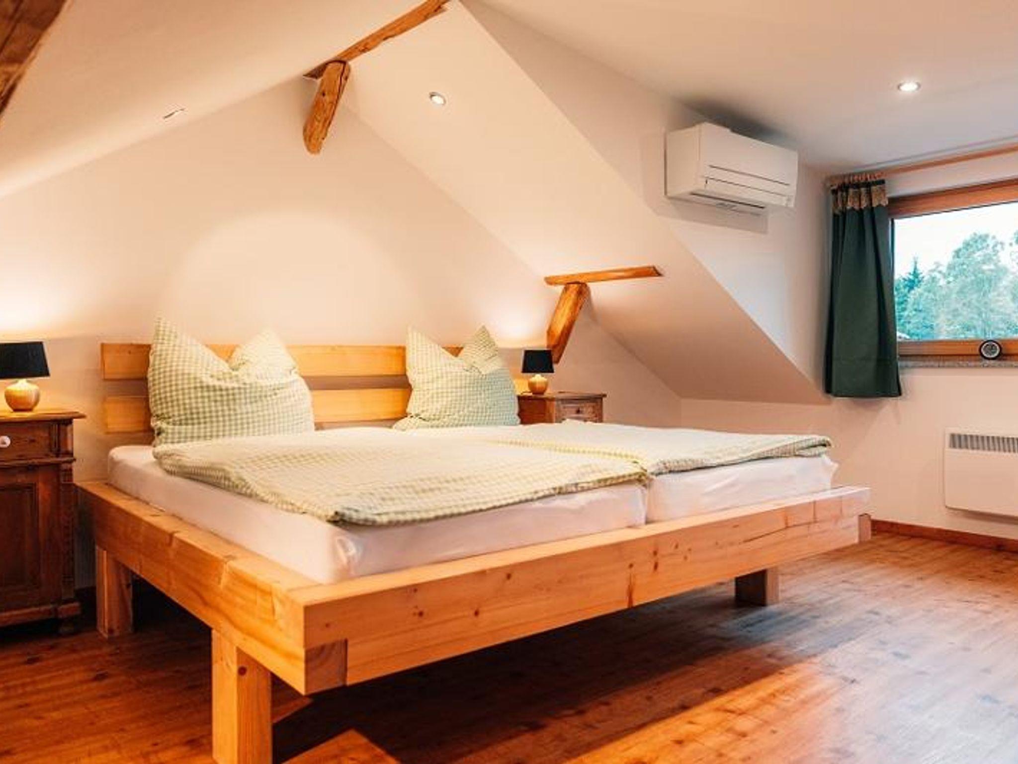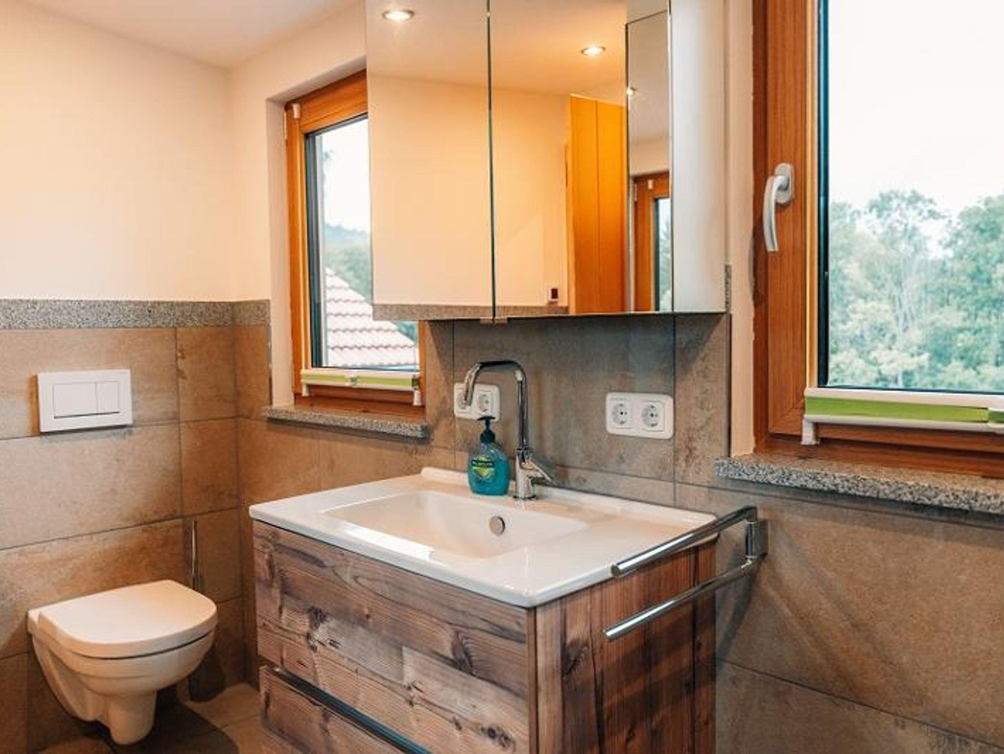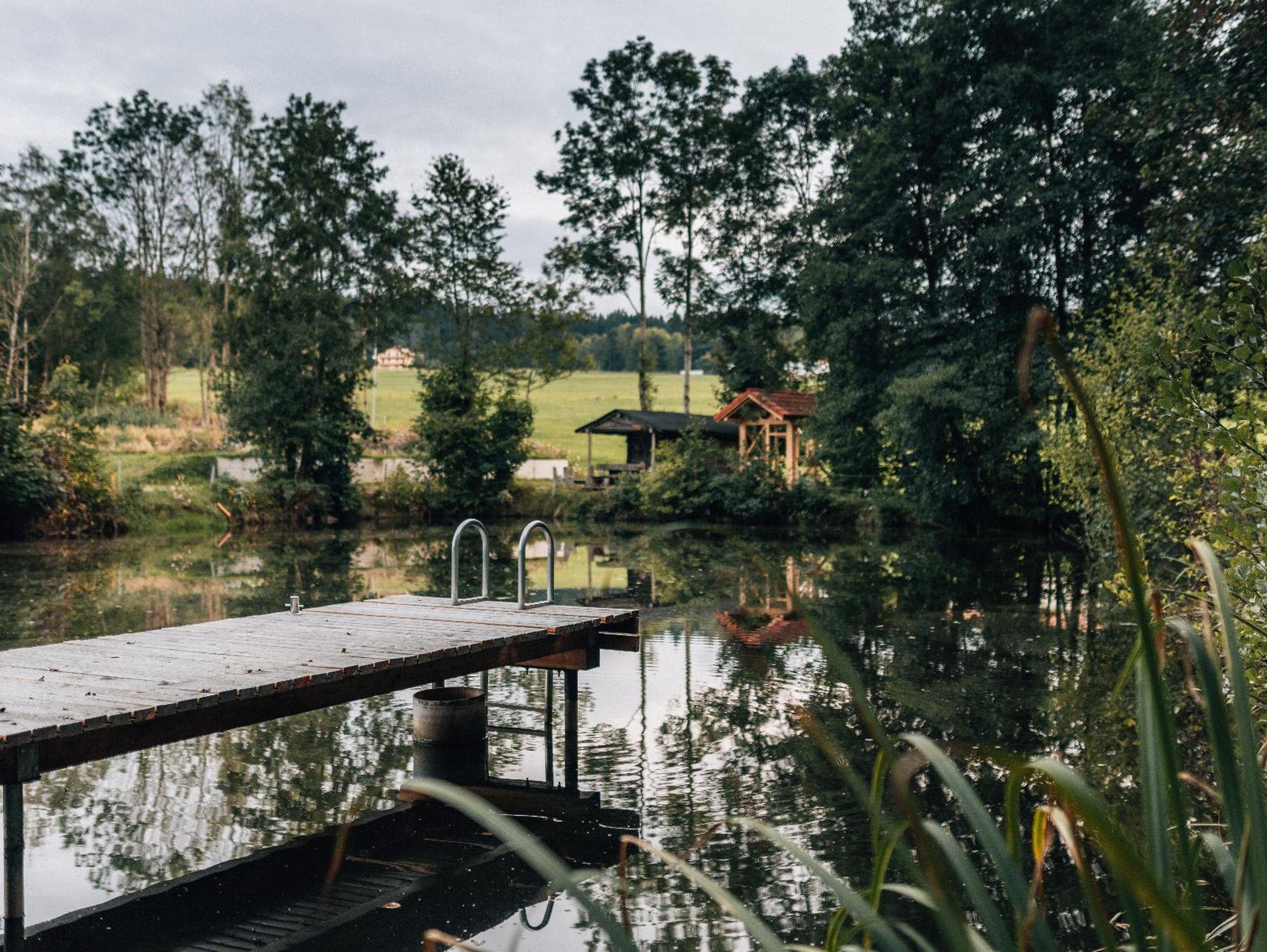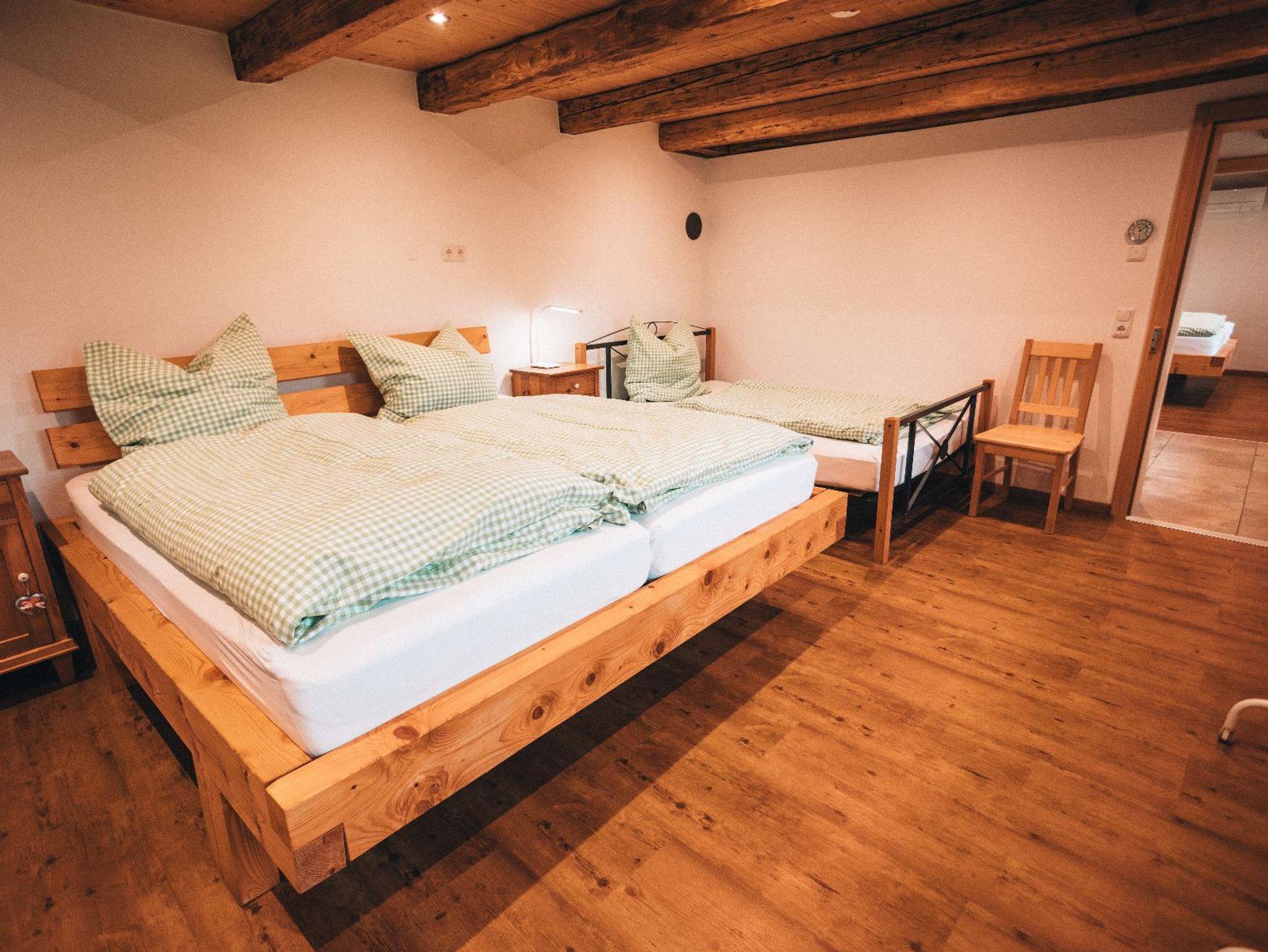 Unser mitten im Wald gelegenes Woidhaus verspricht viel Erholung und Freude. Ihre direkten Nachbarn sind nur die Tiere des Bayrischen Waldes. Hier sind Sie am idealen Startpunkt für Wanderungen, Mountenbike, Hike und Bike! Im Winter können Sie in unmittelbarer Nähe Skifahren und Langlaufen. Direkt vor der Haustür ist Ihr eigener Schlittenhang und Startpunkt für Schneeschuh Ausflüge. Ein Paradies für Familien Biker und Wanderer, oder auch nur welche, die absolute Ruhe brauchen! Am Fuß des Pröllers gelegen, haben Sie im Winter das perfekte Skigebiet vor der Haustüre. In ca. 30 Minuten sind Sie am großen Arber oder in Tschechien. Das Woidhaus liegt am Ende einer Privatstraße und ist bis zum nächsten öffentlichen Weg sind es ca. 800 m. Also ideal für Familien mit Kindern, die Freiraum brauchen oder auch solchen, die sich nach Ruhe sehnen! Am ca. 5 Gehminuten erreichbaren Weiher kann man die Seele baumeln lassen. Die Fische freuen sich über Futter und lassen sich beim Fressen auch gerne mal zuschauen. In der Nähe ist Grün und St. Englmar. Dort gibt es zwei Freizeitparks, Indoorspielhalle, Museen, Klettergarten, Restaurants, unzählige Wander- und Fahrradrouten. Im nahe gelegen Viechtach kann man gut und günstig einkaufen. Auch der Pfahl mit seinem Klettermöglichkeiten, ein Freibad und Hallenbad befinden sich ebenfalls dort. In ca. 20 km Entfernung erreichen Sie die Pfingstritt Stadt Bad Kötzting wo eine Spielbank und das Erlebnisbad AquaCur nur zwei der vielen Highlights darstellen. Das Woidhaus ist ein altes Bauernhaus, welches wir die letzten Jahre mit viel Liebe zum Detail renoviert haben. Teilweise wurde es auch außen noch im Urzustand gelassen um den Flair zu erhalten. So auch die etwa 200 Jahre alte Scheune. Es besteht aus 3 Stockwerken. Das untere Stockwerk ist noch im Urzustand. Der Mittlere und obere Stock wurde als Wohnbereich komplett neu ausgebaut. Ein Bad mit Regendusche ist nur eine Besonderheit. 2 Schlafräume eines mit Doppelbett, eines mit Doppelbett und Beistellbett sowie eine Wohnküche mit ausziehbarer Couch bietet Platz für bis zu 6 Personen. Im oberen Stockwerk sind ein Balkonzimmer mit 4 Betten und ein Doppelzimmer sowie eine Nasszelle mit Dusche/WC und herrlicher Aussicht ins Grün. Insgesamt haben im Woidhaus 11 Erwachsene bequem Platz. Etwa 5000m² Wiesenflächen umrunden zum Haus und bieten genug Platz zum Toben oder entspannen. Nehmen Sie Platz am großen, gemütlichen Tisch der Wohnküche oder machen Sie es sich auf unserer „Gredbäng“ gemütlich und genießen Sie Ihren Urlaub.