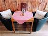 Des Weiteren gibt es ein SAT-TV, einen großen Kleiderschrank, zwei Sessel, Esstisch und eine Süd-Terrasse.