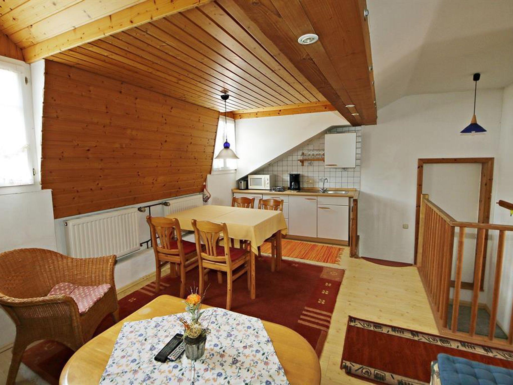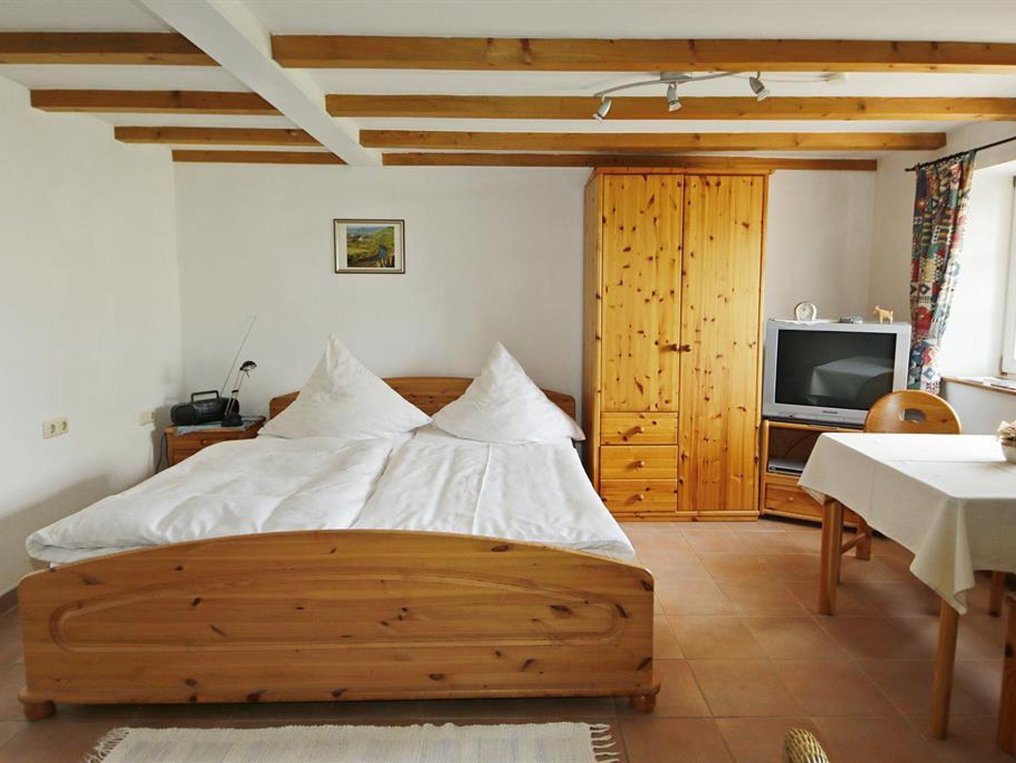 Die Ferienwohnung verfügt über 1 Doppelschlafzimmer, Wohnzimmer, Du/WC und Küchenzeile.
