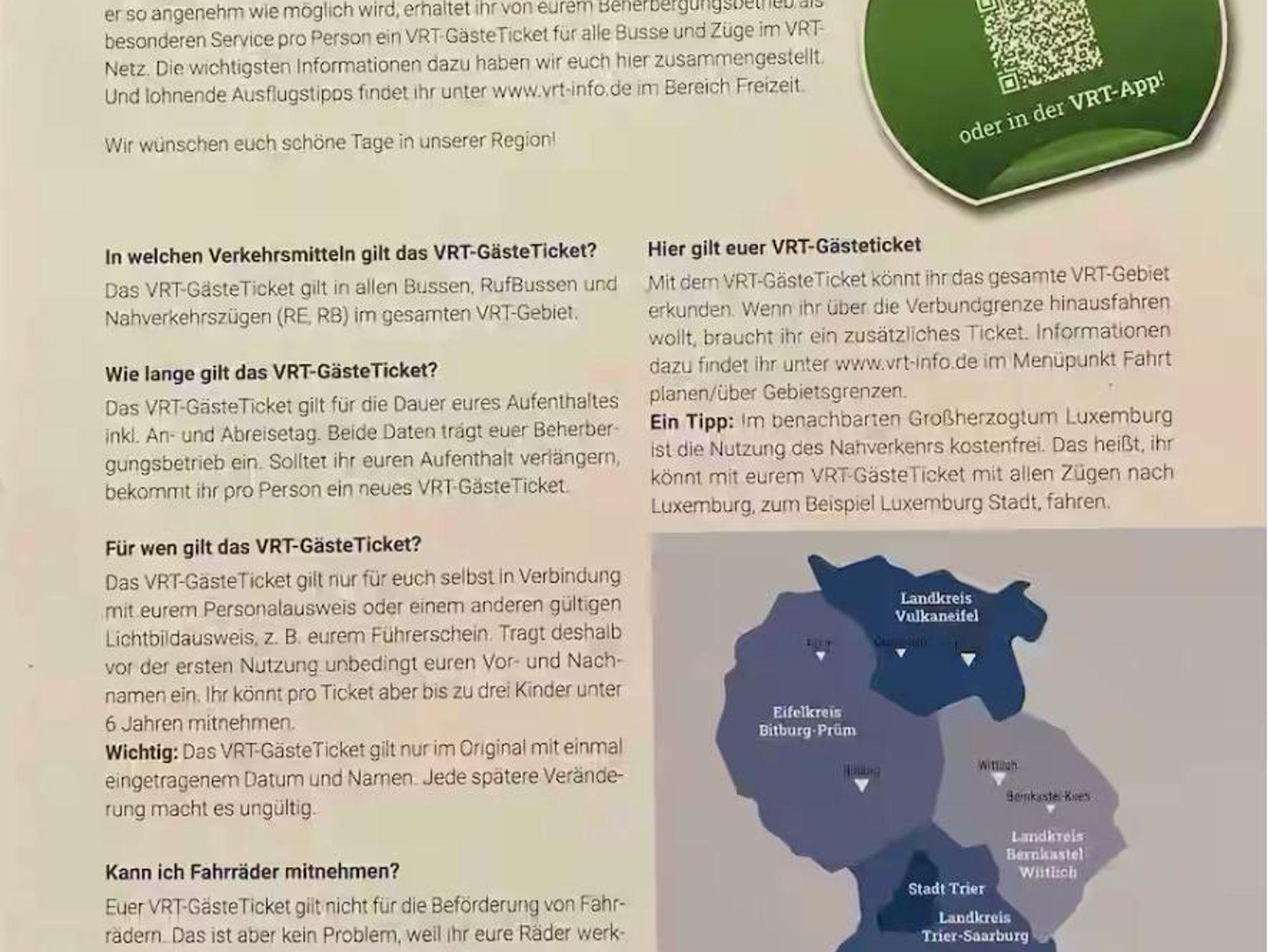 VRT-Gästeticket inklusive - kostenlos unterwegs mit Bus & Bahn: