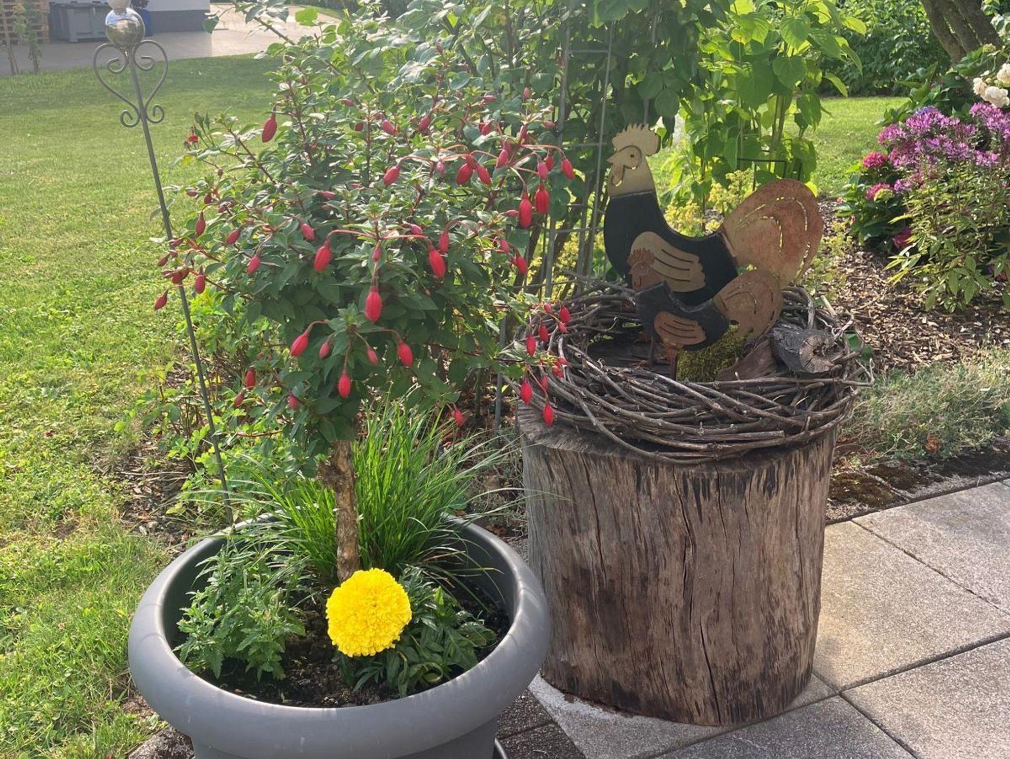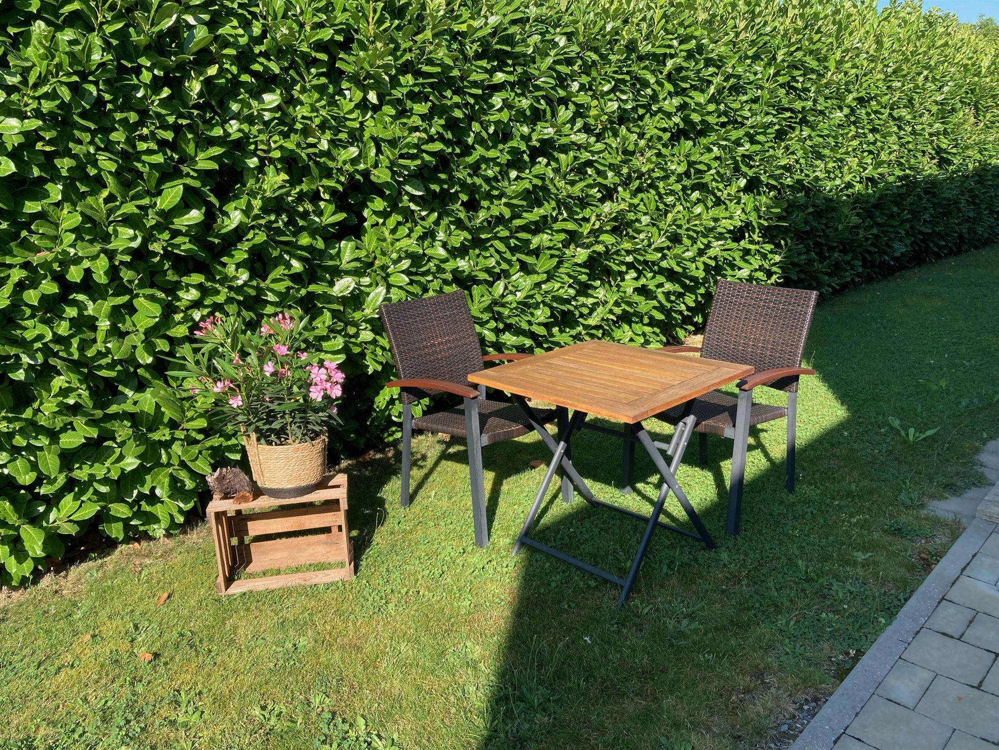 Das moderne und neu ausgestattete 1-Raum-Appartement verfügt über einen sep. Eingang, der über 5 Stufen erreichbar ist. Im Grünen befindet sich eine kleine Sitzecke. Gut ausgestattete Küche, kombinierter Wohn-/Schlafraum mit TV, Dusche/WC.
