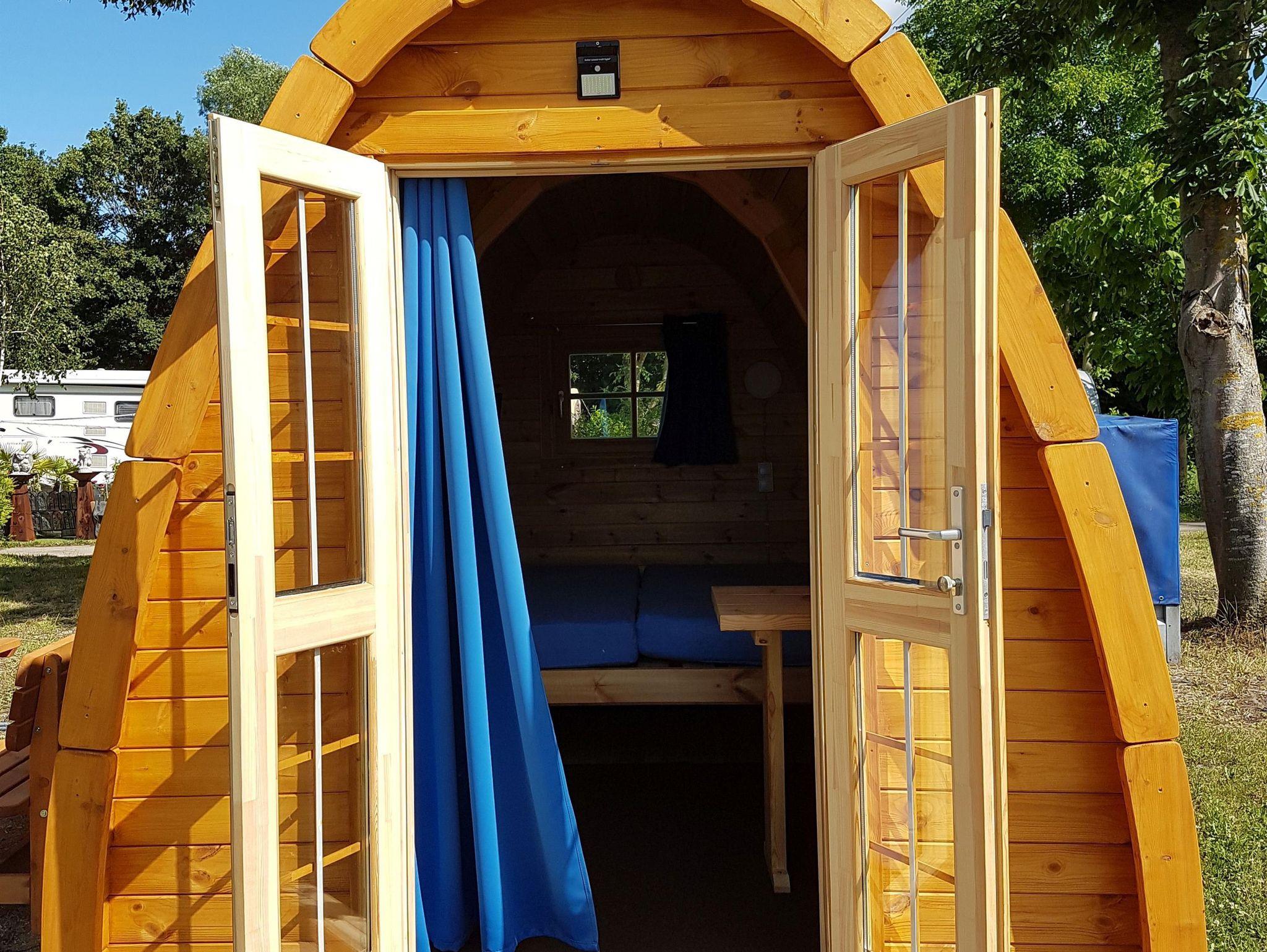 CAMPINGFASS: Wenn Sie eine etwas andere Unterkunft suchen - schlafen im Fass: Wir können Ihnen 3 Campingfässer auf dem Campingplatz zur Einzel oder Doppelbelegung anbieten. Alle Fässer mit großem Doppelbett (2,00 x 2,00 m). Steckdosen zum Laden von Handy oder Fahrrad, Deckenheizung, WLAN, TV, Sitzbank und Duschkarte für Sanitärgebäude Campingplatz. Bitte beachten Sie: Wäschepaket für diese Einheit ist nicht im Preis enthalten, kann aber als Zusatzleistung hinzu gebucht werden. Haustiere sind in dieser Kategorie nicht erlaubt.