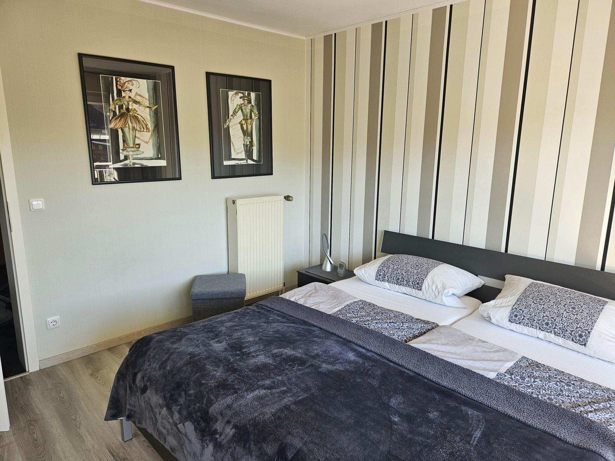 Im gemütlichen Schlafzimmer mit Doppelbett finden Sie die Ruhe für einen tiefen und erholsamen Schlaf. Ihre Kleidung und auch das Gepäck lassen sich bequem im großen Kleiderschrank unterbringen. Für Ihre Wertgegenstände steht Ihnen ein Safe zur Verfügung. Es gibt ebenfalls zwei Nachtschränke mit jeweils einer Nachttischlampe.