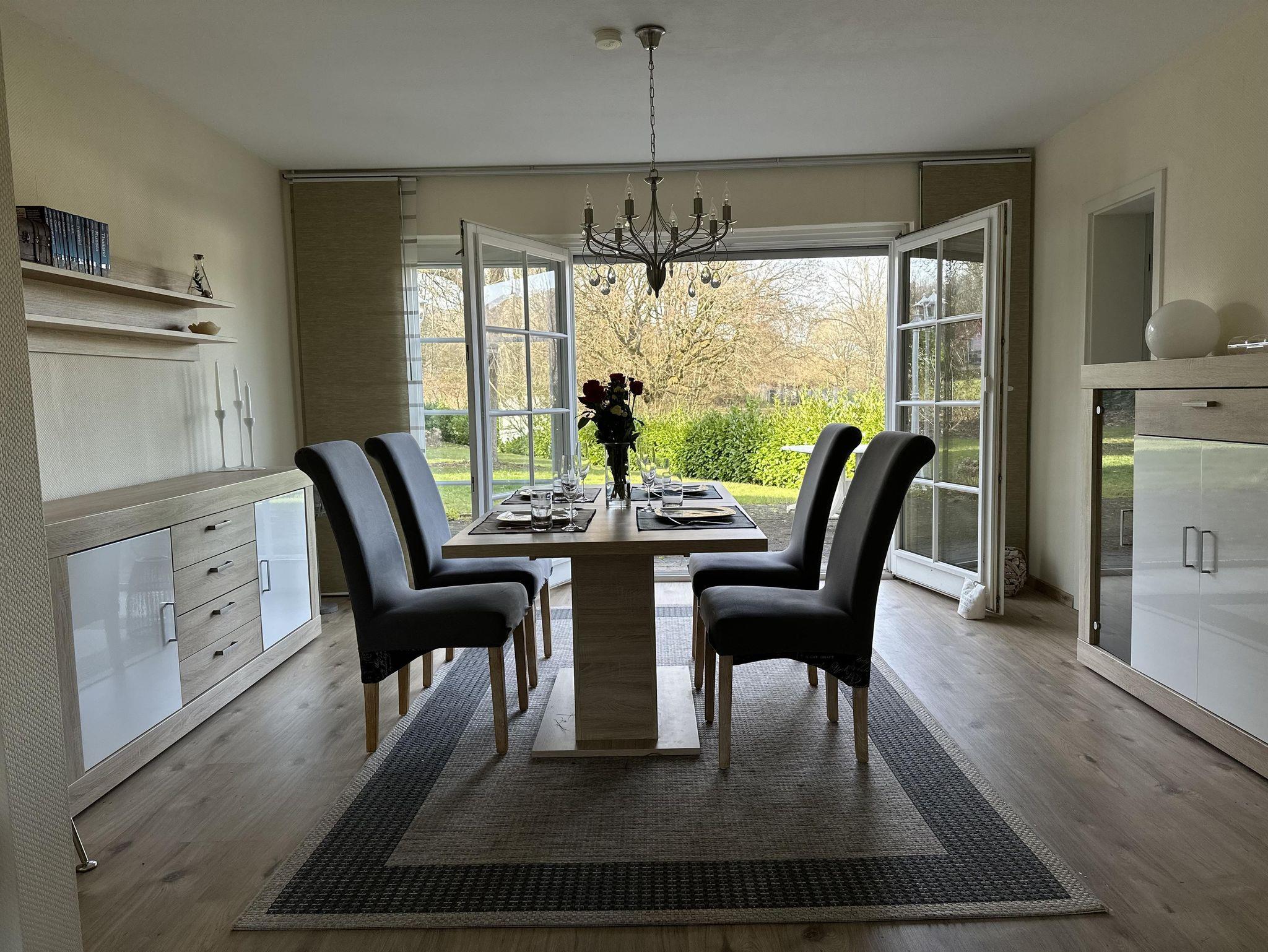 Der lichtdurchflutete und moderne Wohn- und Essbereich bietet mit seinen 47 qm viel Raum zum Erholen. Machen Sie es sich bequem auf der modernen Sitzcouch, die bei Bedarf einfach in ein weiteres Doppelbett verwandelt werden kann. Im Wohnzimmer können Sie, wie gewohnt, über einen großen Flachbildfernseher Ihre geliebten TV- oder Musiksendungen verfolgen. Vom Wohnbereich aus gelangen Sie auf den 12 m großen Südbalkon. Der Balkon ist ebenfalls vom Schlafzimmer aus zu begehen und lädt zum Frühstücken, Ruhen und Entspannen ein. Vom gemütlichen Essbereich aus, mit bodentiefen Flügelfenster, haben Sie einen wunderschönen Ausblick in den zum Wald gerichteten Gartenbereich. Die angrenzende große Terrasse mit Sonnenmarkise und Grillgelegenheit lädt zum Verweilen ein und Sonne genießen ein.