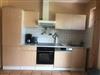 Integriert ist eine Einbauküche mit Kühlschrank, Geschirrspüler, 4-Plattenherd, Backofen, Kaffeemaschine, Toaster und Wasserkocher.