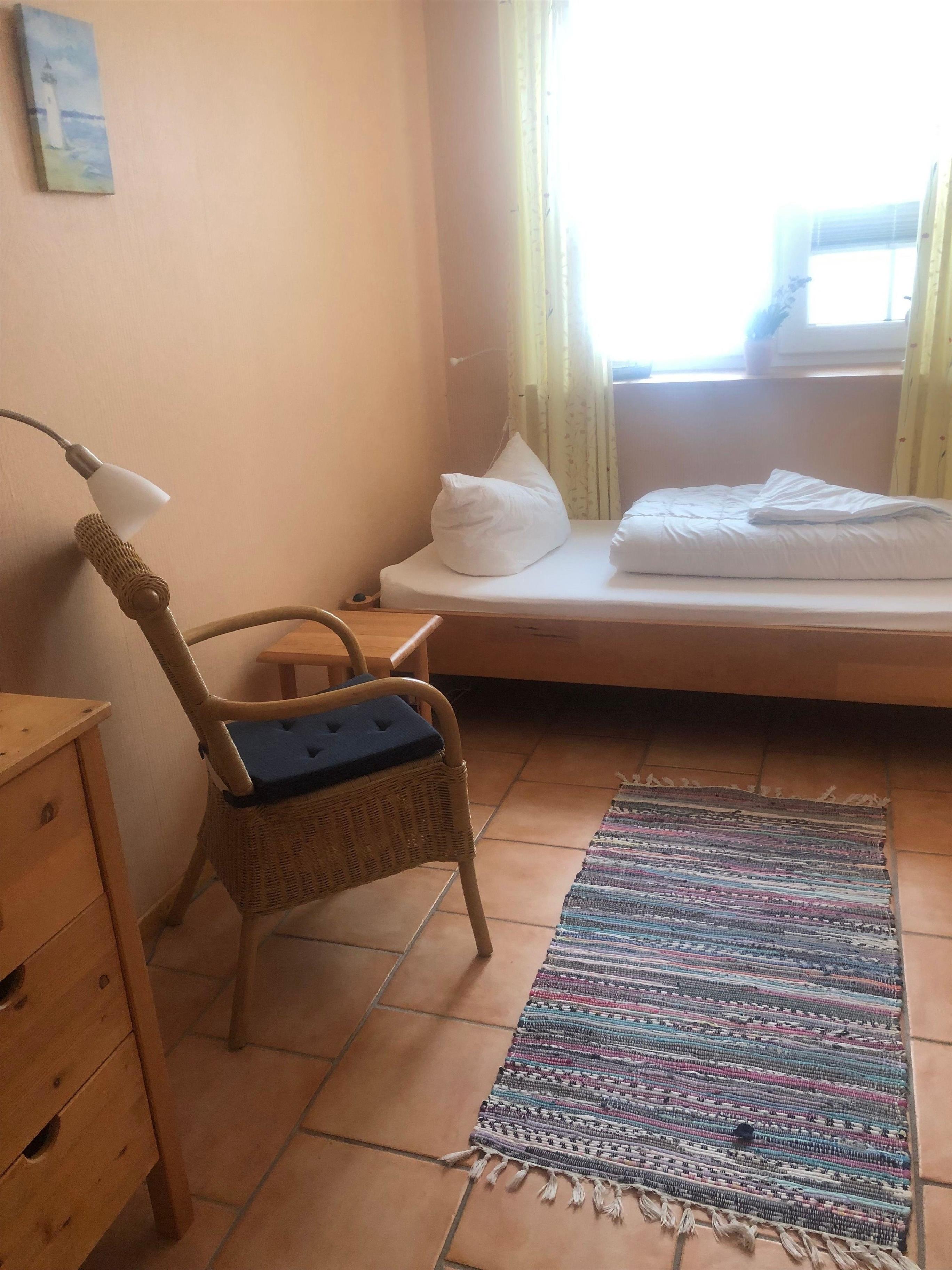Die Wohnung ist hell und gemütlich eingerichtet. Sie verfügt über zwei Schlafzimmer. Davon ist eines mit einem Doppelbett ausgestattet, auch ein Flat-TV ist dort vorhanden. Das andere Schlafzimmer mit einem Einzelbett.