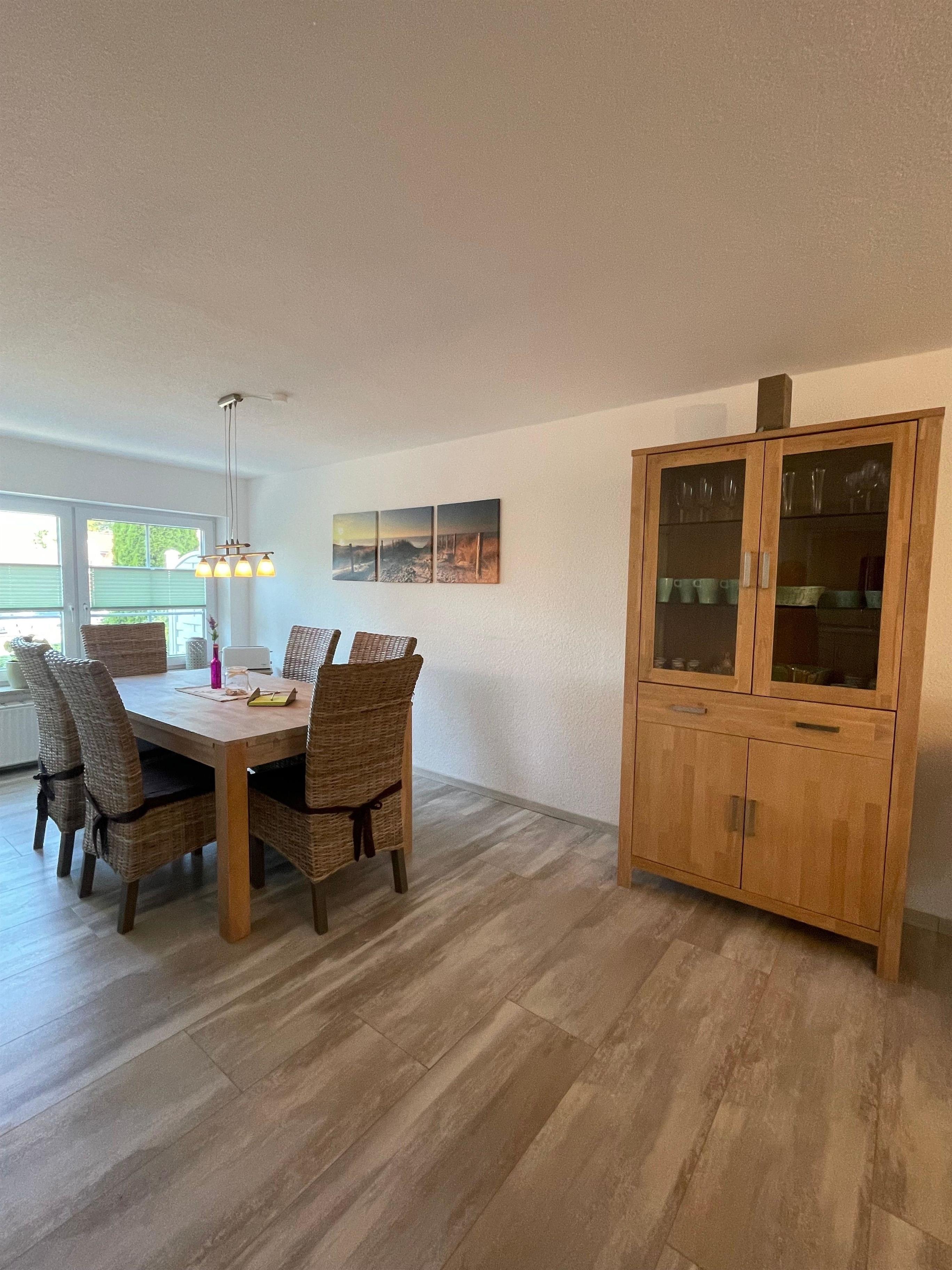 Das EG ist aufgeteilt in ein grosszügiges und geschmackvoll eingerichtetes Wohn-/ Esszimmer mit Kaminofen und einem sich anschließenden Schlafbereich.Ein Wintergarten gehört ebenfalls dazu. Ebenso die volleingerichtete Küche sowie das Badezimmer mit Badewanne.