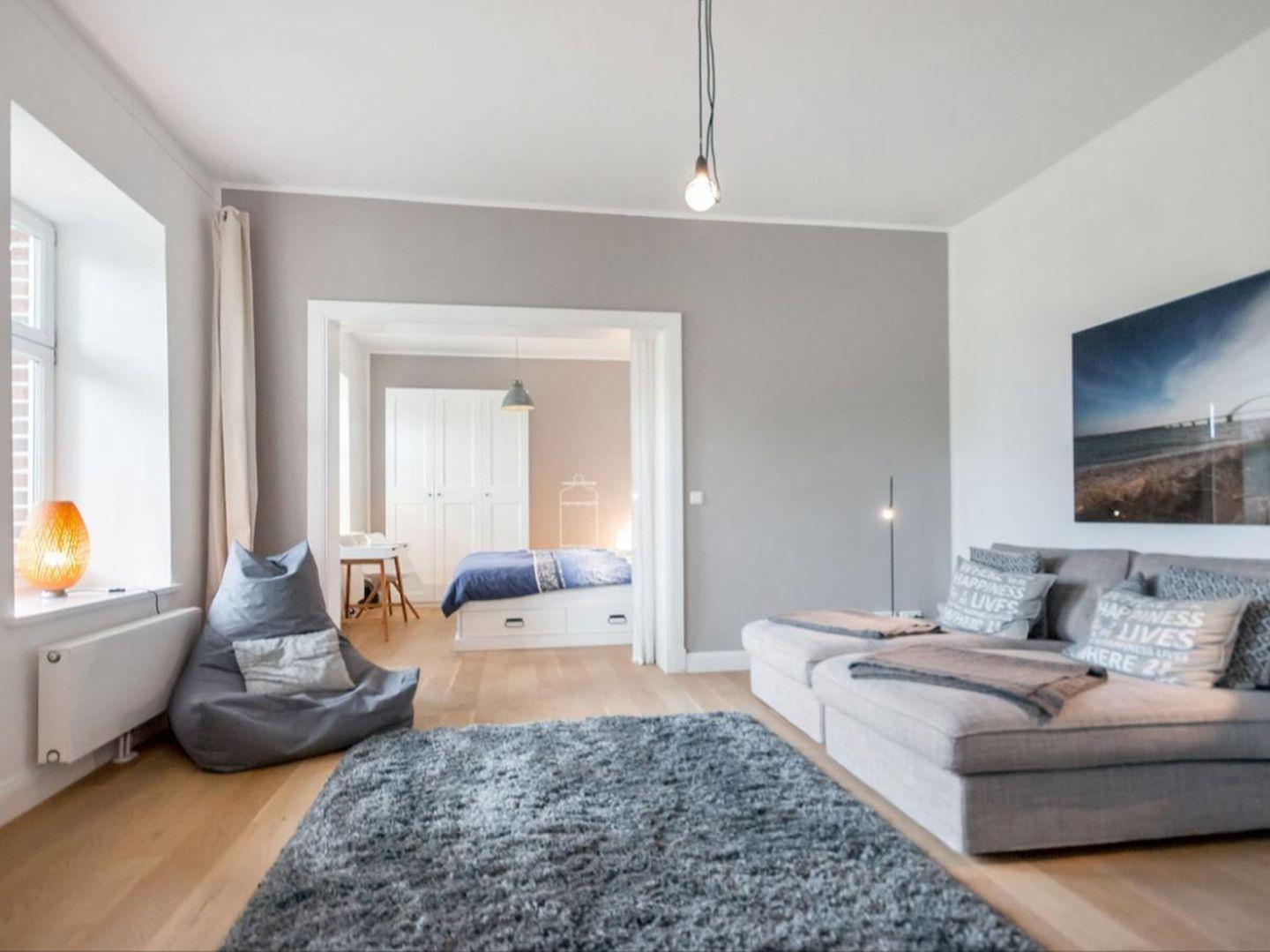 150qm große Ferienwohnung, 2 Schlafzimmer mit Blick in den Garten und ein weiteres Schlafzimmer mit Blick nach vorne, geräumige Wohnküche, großzügige Wohnräume mit gehobener Ausstattung und viel Platz zum Entspannen. Große Terrasse und großer Garten zur alleinigen Nutzung. Es besteht auch die Möglichkeit, das komplette Landhaus zu mieten.