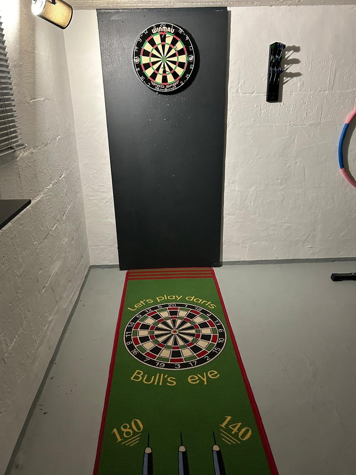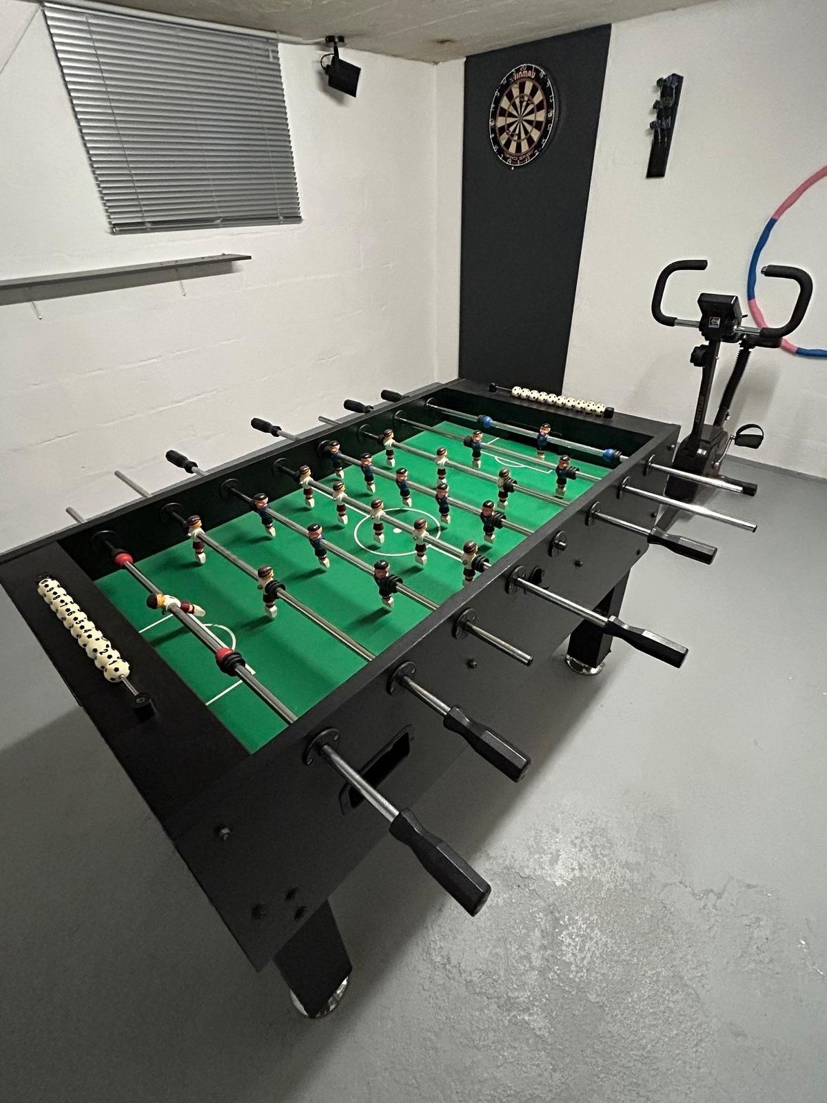 Darüber hinaus befindet sich im Keller noch ein kleiner Freizeitraum mit Tischkicker und Steeldart.