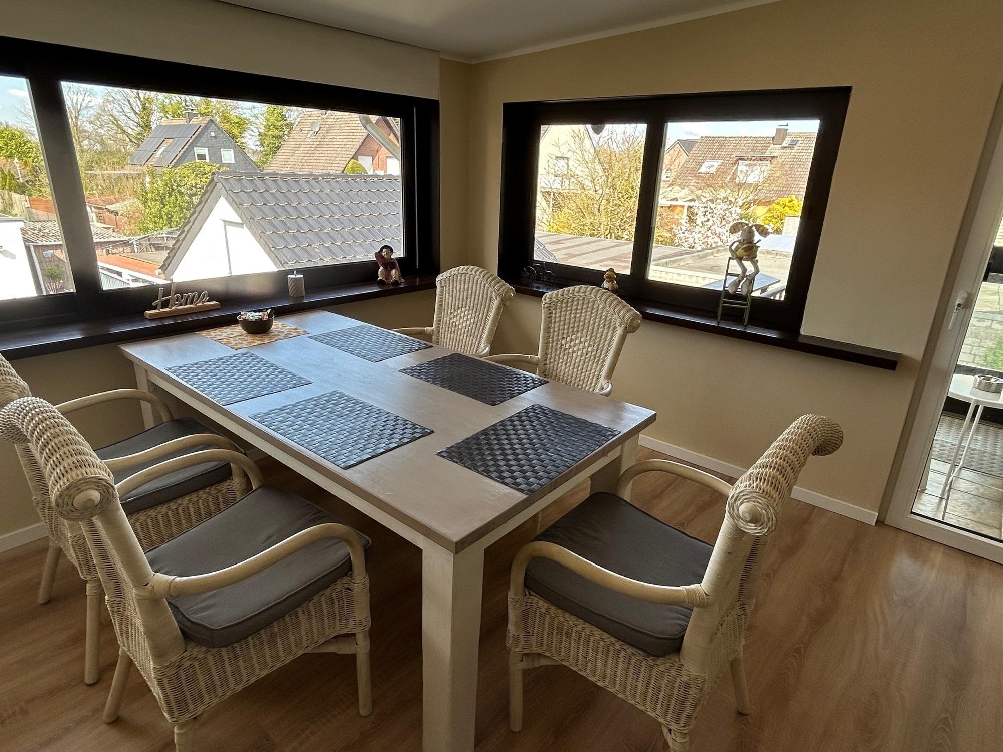 Die gepflegte und gemütliche Einliegerwohnung im 1. Obergeschoss bietet großzügigen Raum für bis zu fünf Gäste und einen Hund. Sie überzeugt durch ihre durchdachte Ausstattung sowie ein modernes Ambiente. Zwei separate Schlafzimmer sorgen für Privatsphäre und Komfort: Das erste Schlafzimmer ist mit einem gemütlichen Doppelbett ausgestattet, das zweite verfügt über zwei Einzelbetten. Bettzeug für vier Personen sowie ein Handtuchset pro Gast (bestehend aus je einem großen und einem kleinen Handtuch) sind im Preis inbegriffen.