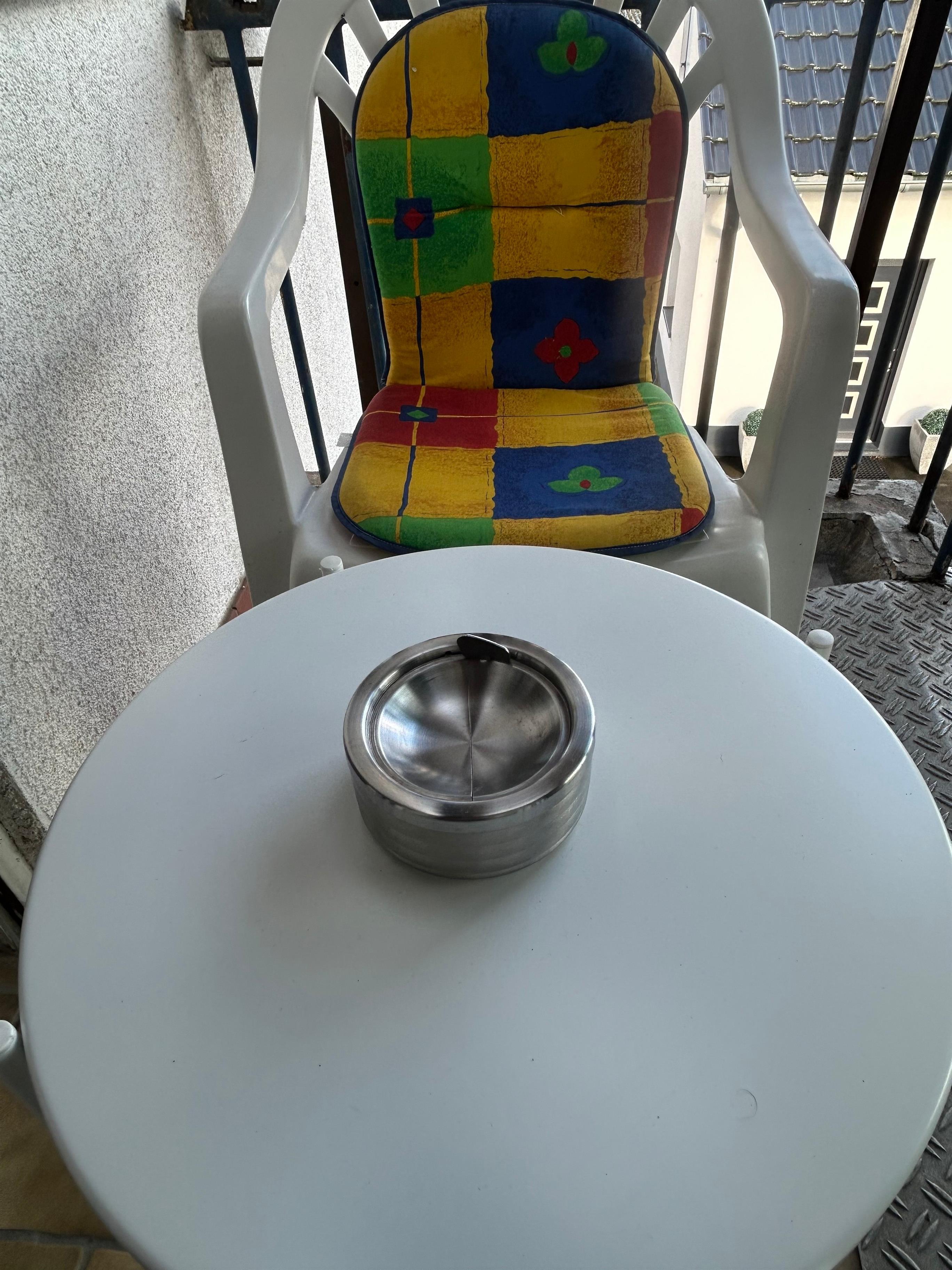 Die Nichtraucher-Wohnung bietet dennoch eine Möglichkeit zum Rauchen: Ein kleiner, überdachter Balkon, der vom Esszimmer aus zugänglich ist, steht zum Rauchen zur Verfügung.