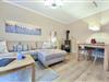 Die Ferienwohnung verfügt über zwei Schlafzimmer, die Ihnen erholsame Nächte versprechen. Das Hauptschlafzimmer ist mit einem großen Doppelbett, verstellbaren Lattenrosten und Verdunklungsmöglichkeiten ausgestattet, um Ihnen optimalen Schlafkomfort zu bieten. Ein zweiter Fernseher im Schlafzimmer sorgt für zusätzliche Unterhaltung. Das zweite Schlafzimmer ist mit zwei Einzelbetten eingerichtet und bietet ebenfalls Verdunklungsmöglichkeiten. Das helle Badezimmer mit bodentiefer Dusche rundet das Angebot ab und sorgt für einen angenehmen Start in den Tag.