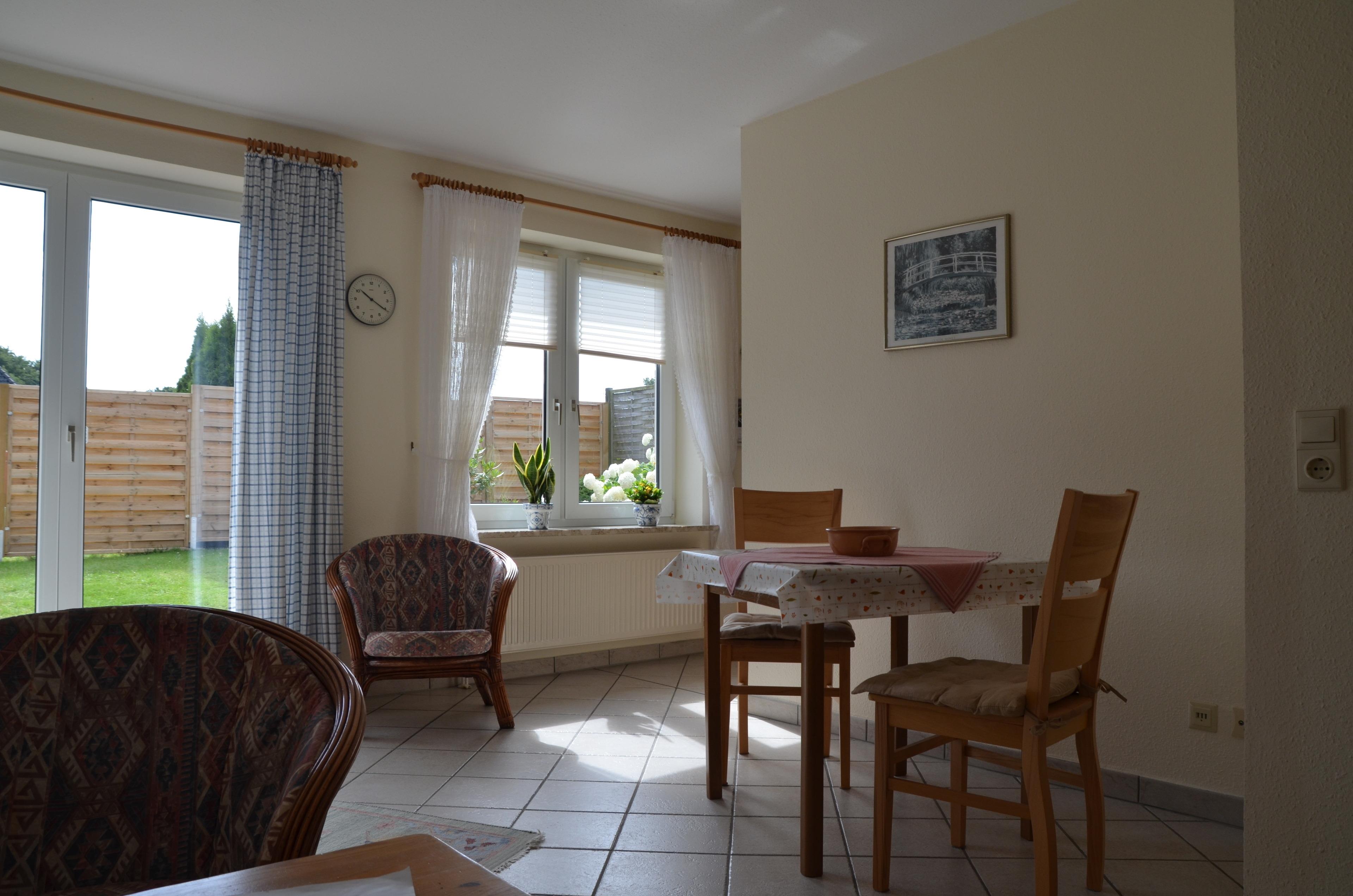 Die Ferienwohnung befindet sich am Ortsrand in einer ruhigen Seitenstraße. Die Wohnküche ist mit einer Einbauküche ausgestattet und offen zum Wohnraum.
