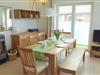 Der Essbereich mit hochwertigen Eichenmöbeln bietet 8 Personen Platz, den Urlaub auch kulinarisch zu genießen. Die Küche ist mit Geschirrspüler, Mikrowelle, Herd und Backofen sowie den üblichen Annehmlichkeiten ausgestattet.