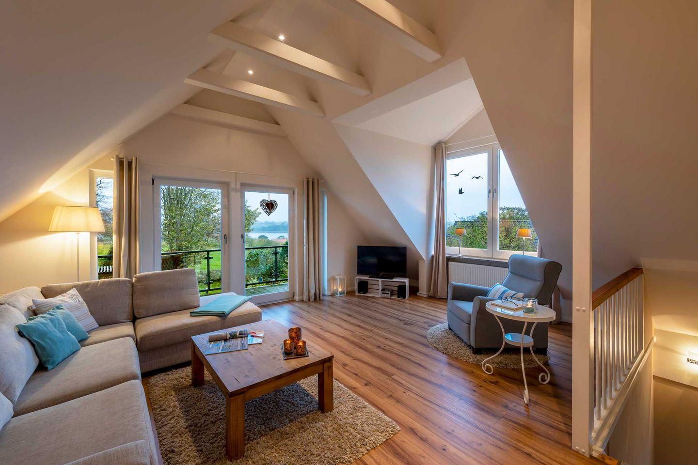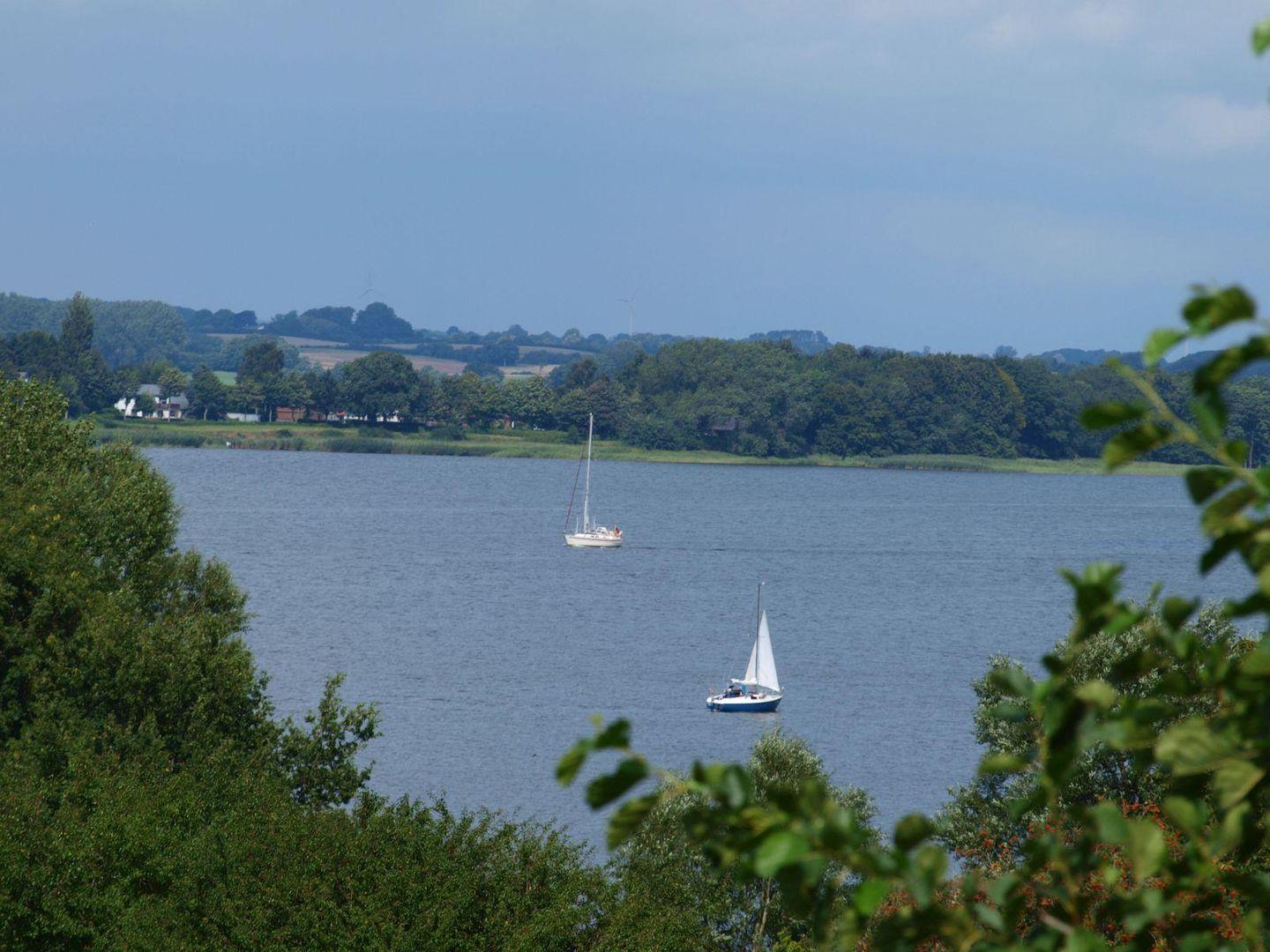 Mit Schleiblick, Terrasse und Balkon. Geeignet für bis zu 5 Personen und 2 Hunde.