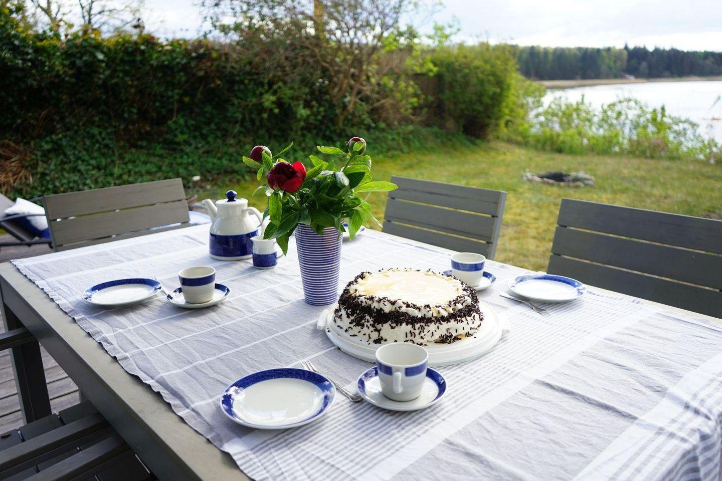 Von der Holzterrasse aus beobachten Sie die vorbeiziehenden Segelschiffe oder geniessen einen lauen Sommerabend an der eigenen Feuerstelle am Steilufer.
