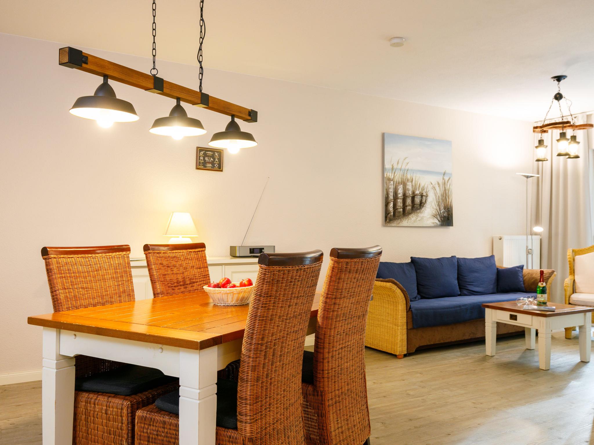 "Neptun", 2-Zimmer-Wohnung 67 m2, im Erdgeschoss. Gemütlich eingerichtet: Wohn-/Esszimmer mit 1 Doppeldiwanbett und Sat-TV (Flachbildschirm), Radio. Ausgang zur Terrasse. 1 Zimmer mit 1 Doppelbett. Kochnische (Backofen, Geschirrspüler, 4 Glaskeramikplatten, Toaster, Wasserkocher, Mikrowelle, elektrische Kaffeemaschine). Dusche/WC. Terrasse. Terrassenmöbel, Gartengrill (mobil). Zur Verfügung: Waschmaschine (extra). Kinderhochstuhl, Babybett. Internet (WLAN, gratis). Bitte beachten: Nichtraucher-Unterkunft. Maximal 1 Haustier/Hund erlaubt. Rauchmelder.