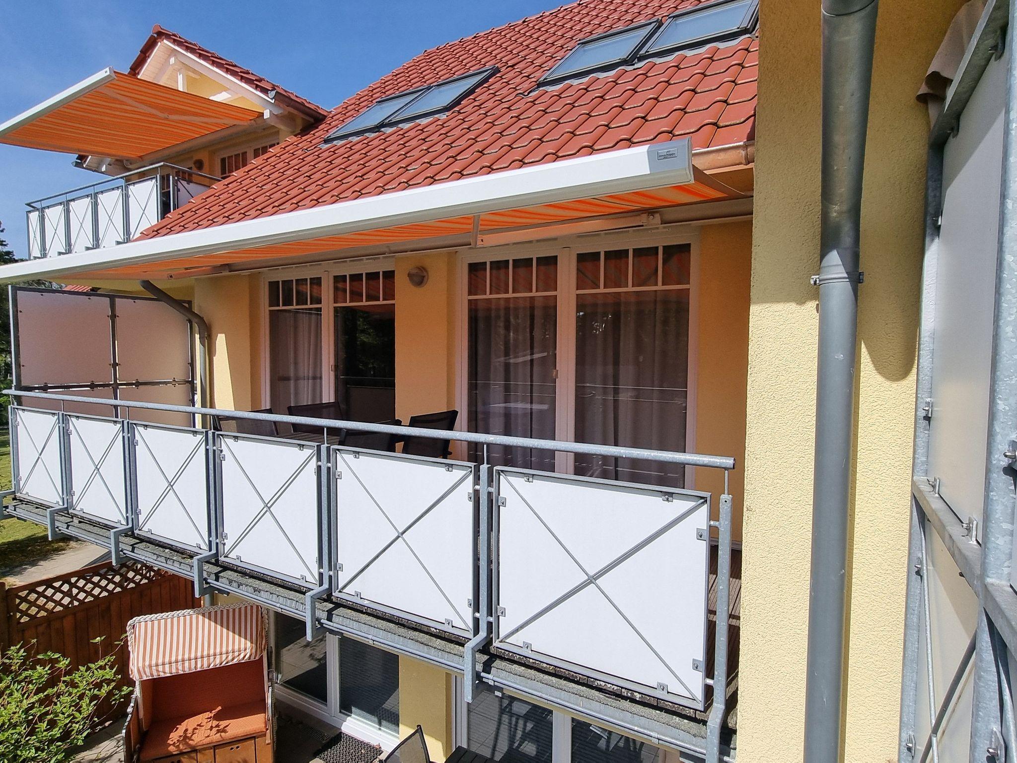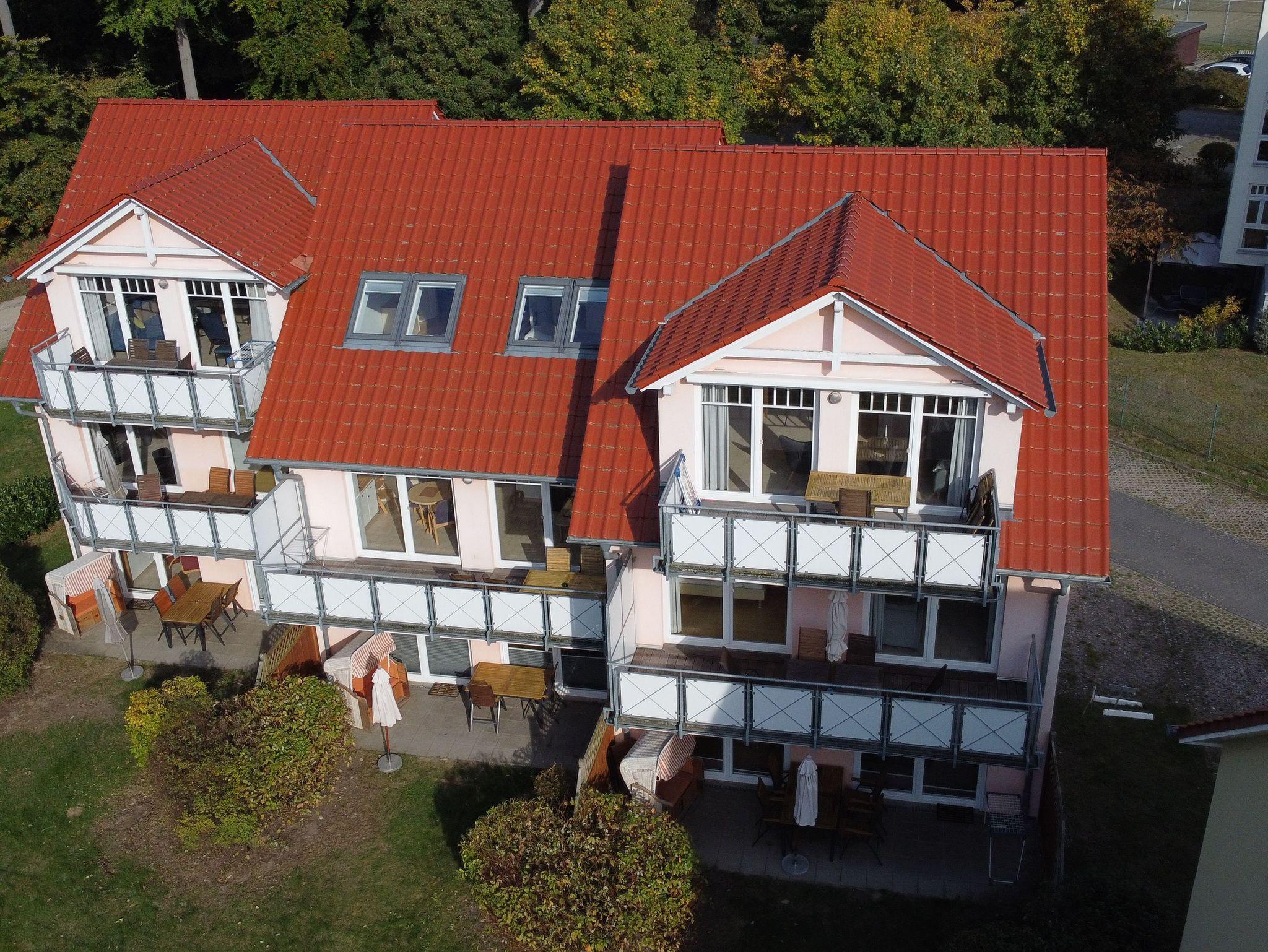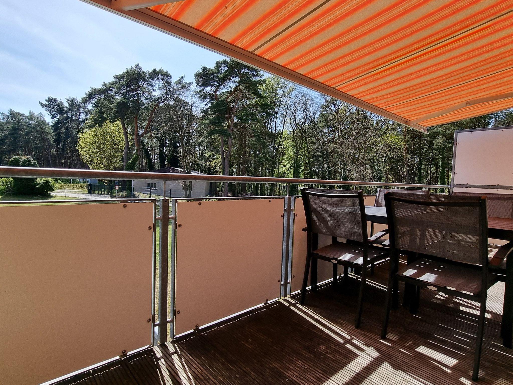 Die Ferienwohnung liegt im Obergeschoß des Ferienhauses. Sie besteht aus Wohnzimmer, kompl. ausgestatteter Küche, Schlafzimmer und Tageslichtbad. Die Ausstattung der Einbauküche ist neuwertig funktional und qualitativ hochwertig unter anderem mit Toaster, Kaffeemaschine, Backofen, Kochfeld, Geschirrspüler, Gefrierfach. Großer Südbalkon mit Blick auf den Küstenwald, große Spielwiese.