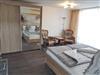 • 1 kombinierter Wohn- und Schlafraum mit Doppelbett (ca. 1,80m x 2,00m), mit 2 Sesseln, Tisch und Kleiderschrank, Flat-TV und Zugang zur Terrasse