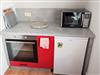Bei der Küche handelt es sich um eine moderne zweigeteilte Einbauküche mit Herd und Backofen und einem Kühlschrank mit Gefriermöglichkeit, zusätzlich befindet sich in der Küche ein Wasserkocher, eine Kaffeemaschine und eine Mikrowelle.