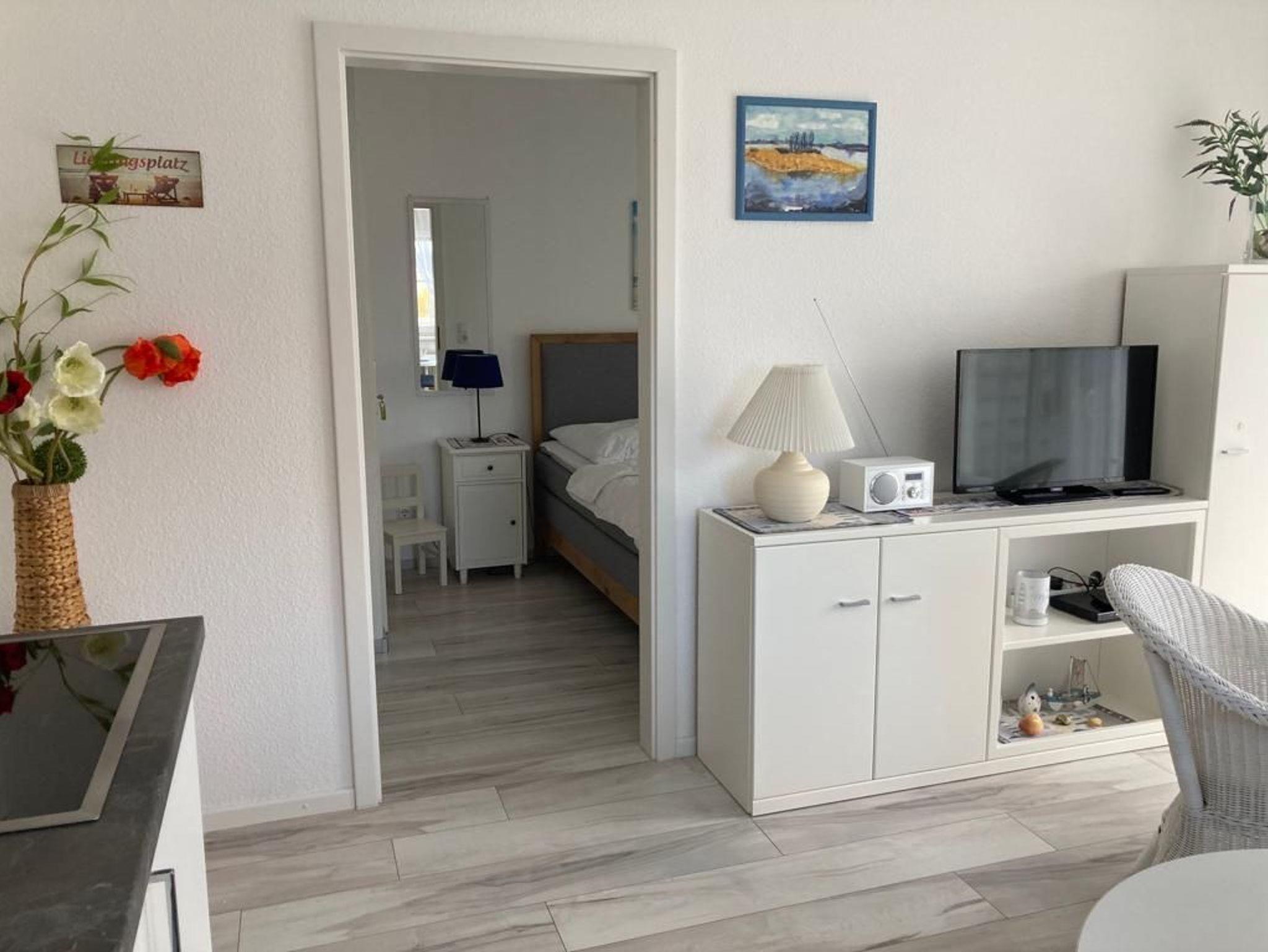 Wohnzimmer mit TV und Radio.