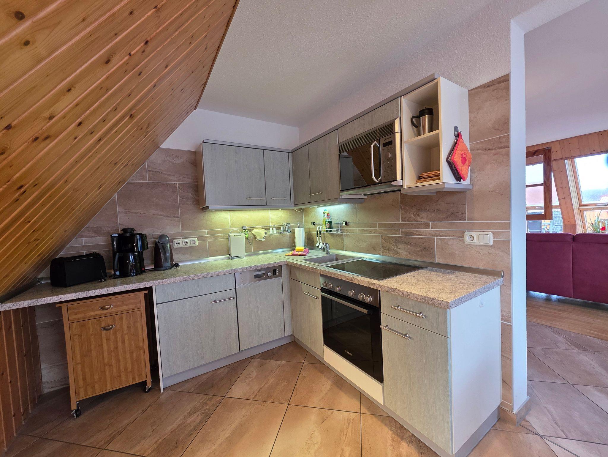 Diese moderne Maisonette-Ferienwohnung bietet alles, was Sie für einen erholsamen Aufenthalt an der Ostsee brauchen: Zwei gemütliche Schlafzimmer sorgen für erholsamen Schlaf, zwei moderne Bäder bieten zusätzlichen Komfort ? ideal für Familien oder befreundete Paare. Die offene, voll ausgestattete Küche mit Cerankochfeld und Geschirrspüler ist nahtlos in den lichtdurchfluteten Wohn- und Essbereich integriert. Ein besonderes Highlight ist die sonnige Dachterrasse mit eigenem Strandkorb ? perfekt für entspannte Stunden im Freien. WLAN, Bettwäsche und Handtücher sind inklusive, ein kostenfreier Parkplatz steht optional zur Verfügung.