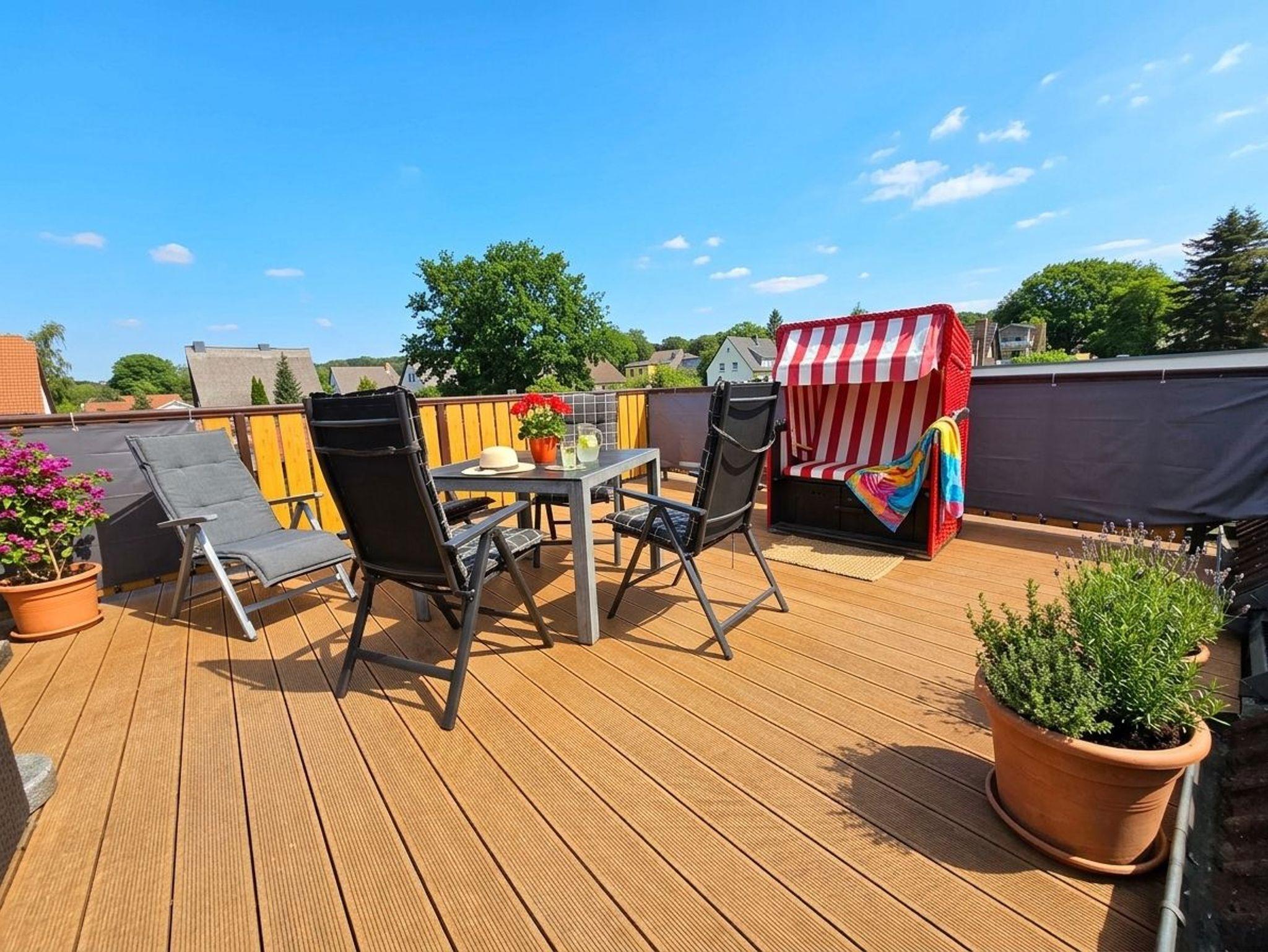 Ferienwohnung Valentin in Koserow bietet modernen Komfort und eine sonnige Dachterrasse nahe dem feinsandigen Ostseestrand.