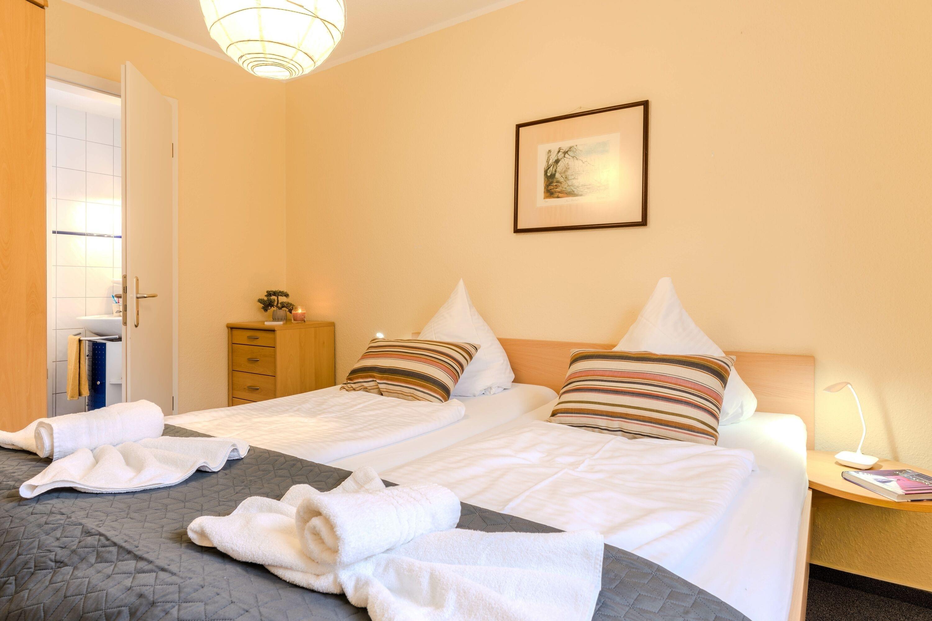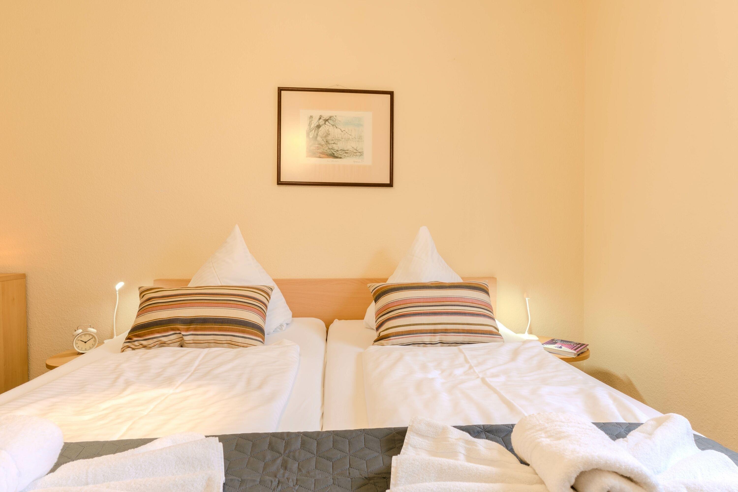 Das Appartement bietet Platz für 2–3 Gäste. Neben dem Doppelbett im Schlafzimmer steht eine zusätzliche Schlafcouch im Wohnbereich zur Verfügung – ideal für ein Kind oder eine dritte erwachsene Person.