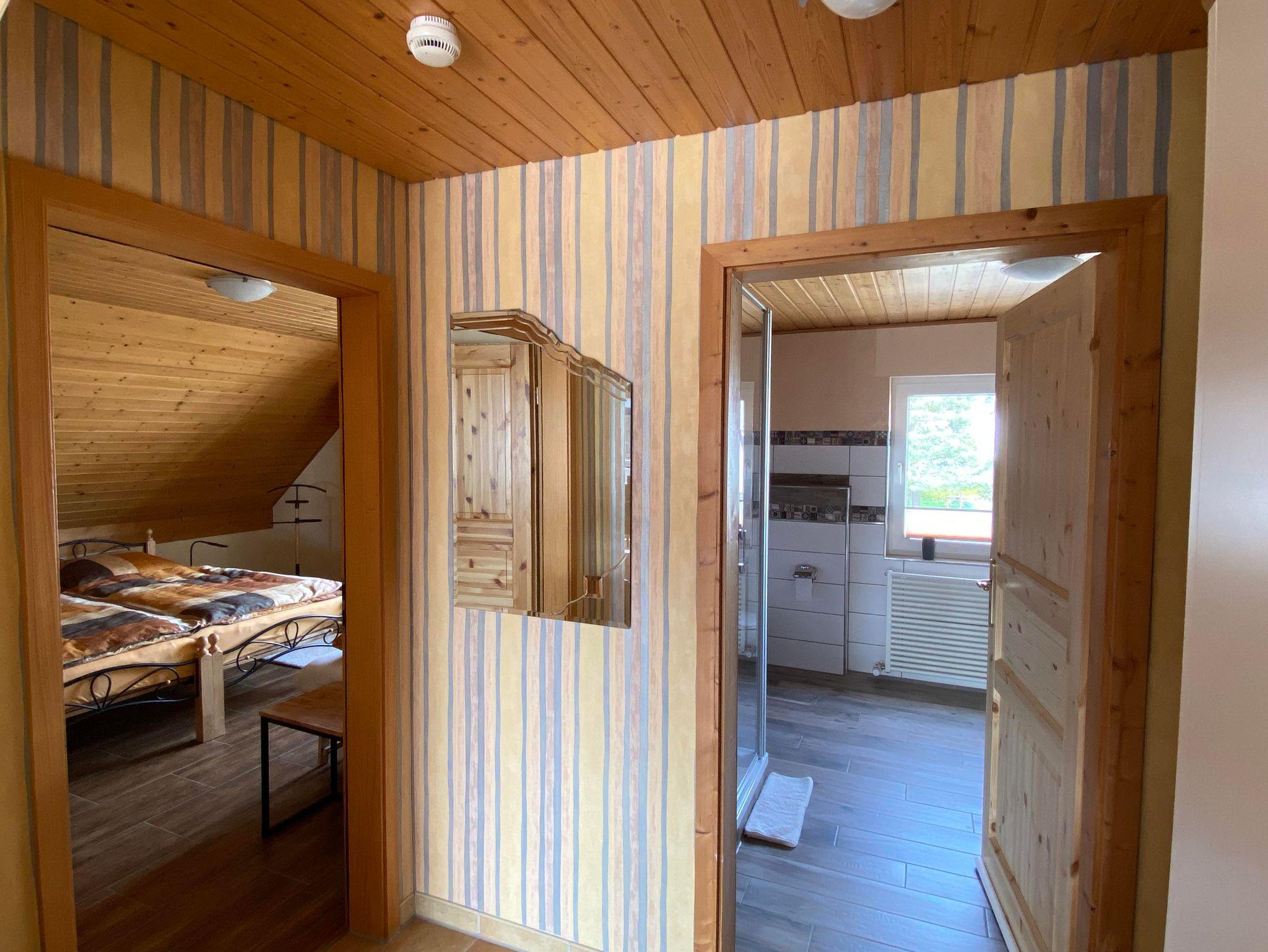 Mitten im Ort, in ruhiger Lage, steht unser freistehendes Einfamilienhaus, in dem sich die Ferienwohnung im 1. Stockwerk befindet. Sie bietet Ihnen zur Erholung und zum Ausspannen eine ruhige und behagliche Atmosphäre.