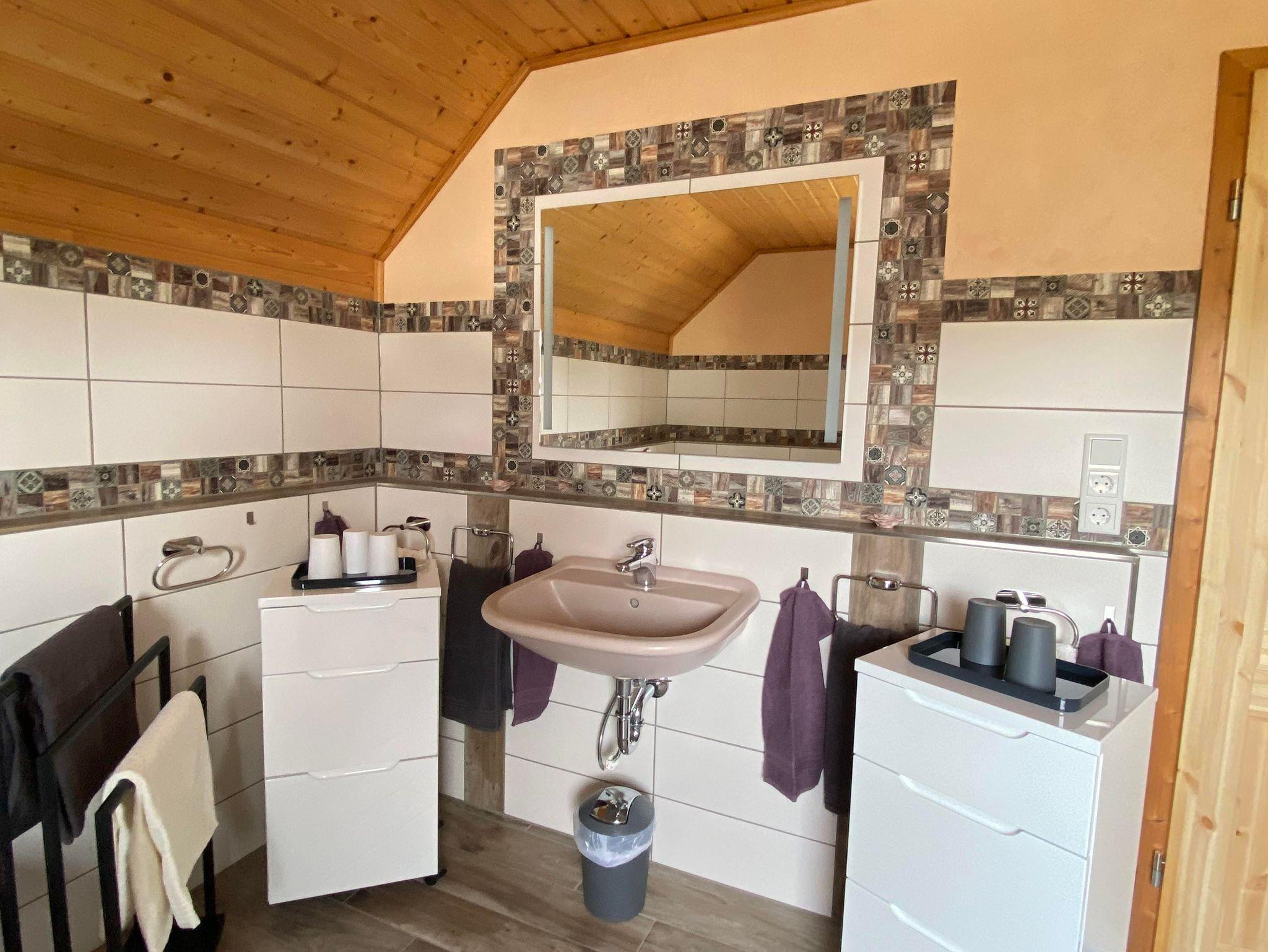 Die Ferienwohnung bietet Ihnen natürlich auch ein geräumiges, gut ausgestattetes Badezimmer.